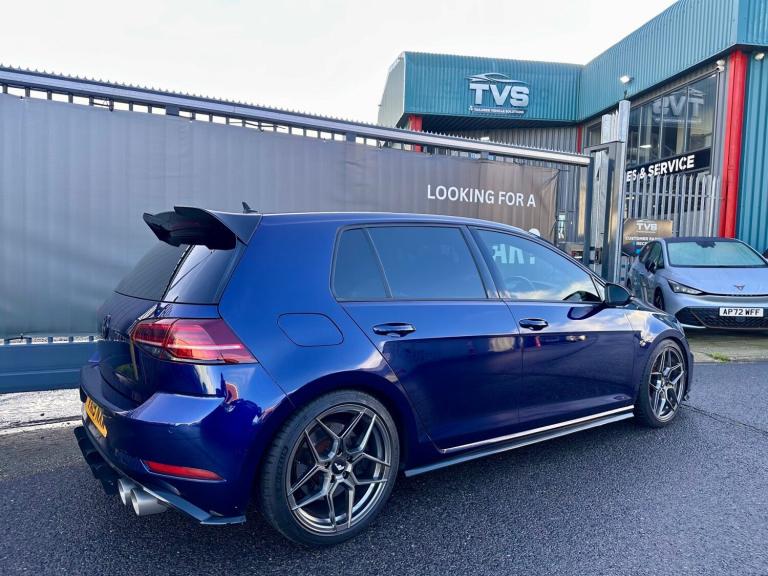 201919 VOLKSWAGEN GOLF R 2.0 TSI 300 4MOTION DSG Hatchback Atlantic Blue Metallic OEM+ Performance Build Full Service History Finished in Atlantic Blue Metallic, this Golf R is the perfect example of how to do a performance hatch properly. Subtle, aggressive and enhanced with high-quality, well-chosen upgrades, this is a sorted, enthusiast-owned example, not a rough modified car. Powered by the legendary 300PS 2.0 TSI engine, paired with the lightning-fast 7-speed DSG gearbox and 4MOTION all-wheel drive, it delivers huge performance with confidence in all conditions. Performance & Driving 300 PS 221 kW 2.0 TSI Engine 4MOTION All-Wheel Drive 7-Speed DSG Automatic with Paddle Shift Dynamic Steering Driving Profile Selection (Eco Comfort Race) Electronic Differential Lock (XDS) Adaptive Cruise Control with Stop & Go Performance Enhancements RAMAIR Induction Kit sharper throttle response & improved airflow Performance Exhaust System deeper, sportier soundtrack without being intrusive H&R Lowering Springs improved stance, reduced body roll & sharper handling 18 Japan Racing Alloy Wheels in Gunmetal Finish Michelin Pilot Sport 4 Tyres premium performance rubber offering excellent grip and confidence (All upgrades are from reputable brands and complement the Golf R platform perfectly.) Key Specification Highlights Full Golf R Exterior Styling Pack LED Headlights with Cornering Function LED Rear Lights Front & Rear Parking Sensors Dual-Zone Climatronic Climate Control Heated Front Sports Seats Leather-Wrapped Multifunction Sports Steering Wheel Digital Active Info Display Discover Media Navigation System Ambient Interior Lighting Auto-Dimming Rear View Mirror Power-Folding Heated Door Mirrors Privacy Glass Rear Roof Spoiler Safety & Technology Adaptive Cruise Control (Follow-to-Stop) Front Assist with Autonomous Emergency Braking & Pedestrian Monitoring Electronic Stability & Traction Control Tyre Pressure Monitoring System Alarm System with Interior Monitoring & Tilt Sensor Multiple Airbags (Front, Side & Curtain) Vehicle Details Registration: VA19 NXW Mileage: 66,750 miles Owners: 2 Keys: 2 Service History: Full Service History MOT: Supplied with a fresh MOT on sale HPI: Clear Condition This Golf R presents extremely well and drives exactly as it should tight, planted and confidence-inspiring. The combination of H&R springs, Japan Racing alloys, and Michelin Pilot Sport 4 tyres gives it a stance and driving feel that's spot on. Buy With Confidence Tailored Vehicle Solutions RAC Warranty Included 12 Months RAC Breakdown Cover RAC Approved Multipoint Inspection HPI Clear Finance Available (HP & PCP) Part Exchange Welcome Why This Golf R? Because it's the complete package: blistering performance, subtle styling, everyday practicality backed up by full service history, fresh MOT, and enhanced with top-tier performance upgrades.