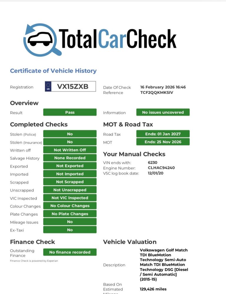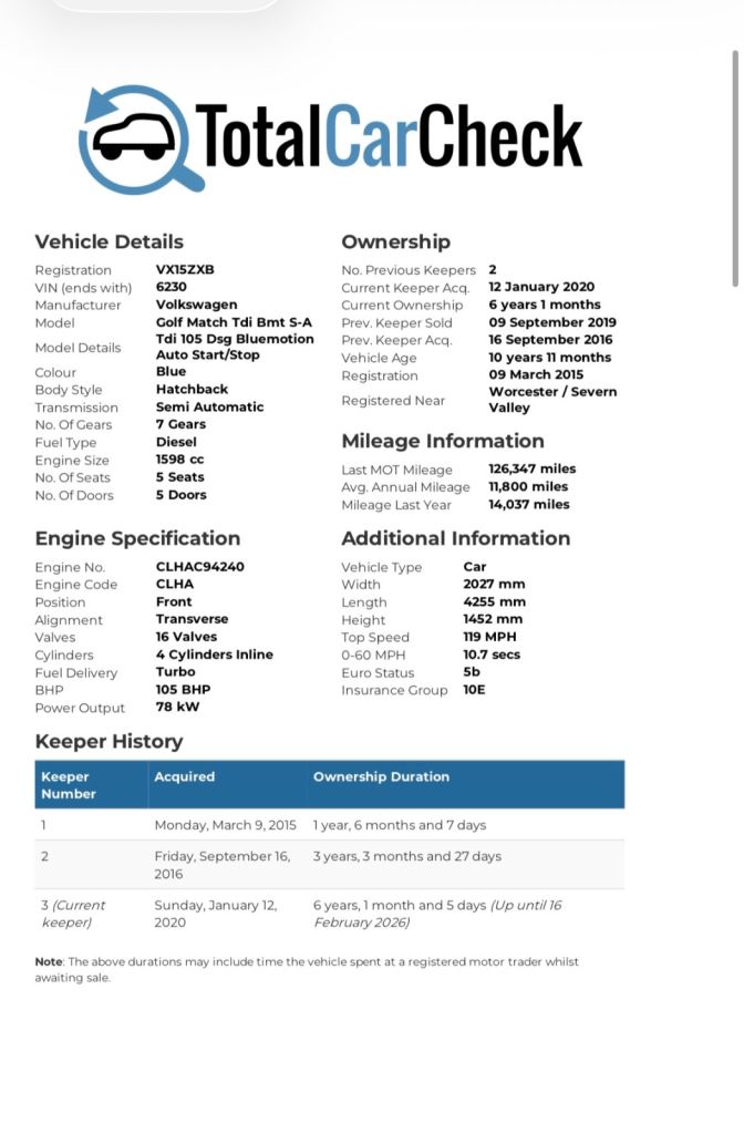 Buy the full report for guaranteed data accuracy, outstanding finance, valuation, milage check & VIN match for £9.99 (normally £19.99)