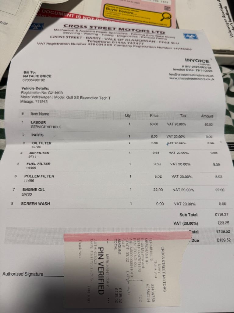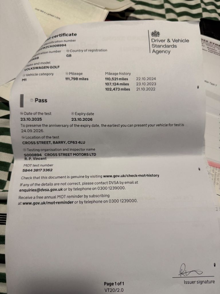 Mot Oct 23rd 2026 - passed last mot with no work need doing