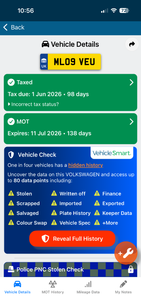 Buy the full report for guaranteed data accuracy, outstanding finance, valuation, milage check & VIN match for £9.99 (normally £19.99)