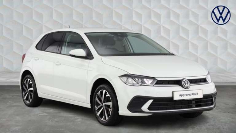 Exterior: Finished in crisp White with contrasting Gloss Black "Talladega" style alloy wheels and blacked-out VW emblems.