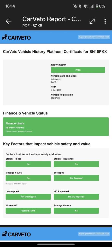 Buy the full report for guaranteed data accuracy, outstanding finance, valuation, milage check & VIN match for £9.99 (normally £19.99)