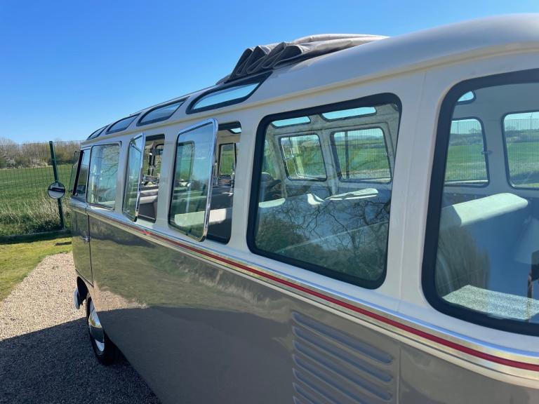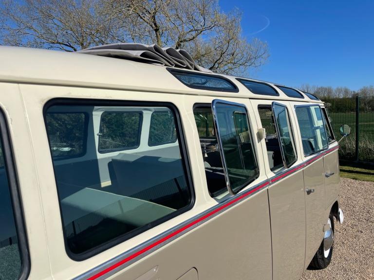 This particular vehicle is Fully Restored and in exceptional condition , We have taken a standard bus and restored into the 23 window Deluxe look and spec including the ragtop and roof windows , Safari front and side windows , Lux Trim , towel rail bumpers