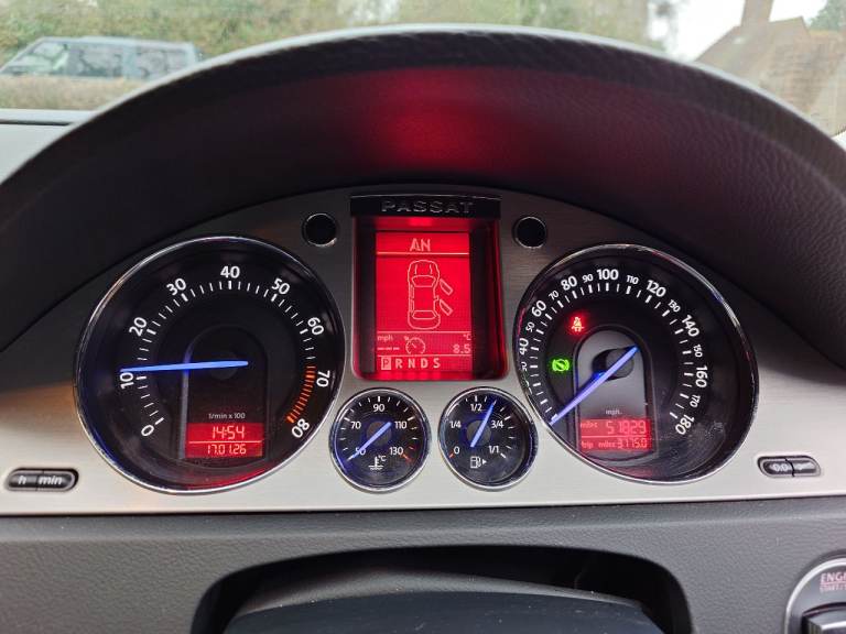 2009 VW Passat 3.6 litre V6 petrol sports saloon with 4WD and auto gearbox. Part leather, part Alcantara trim, cruise control, auto lights, Xenon corner tracking headlights, auto wipers, paddle control gearbox, heated seats, 52k miles with history, non-smoker, recent MOT and service. All switches, dials and LED displays working as they should. Two keys and service history pack. Good tyres with full size spare. Clean and fully equipped example of a great car and worthy of a collector's addition. MOT & service done 03/09/2025.
