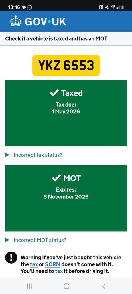 This vehicle has not been reported stolen, scrapped, exported or flagged as unroadworthy.