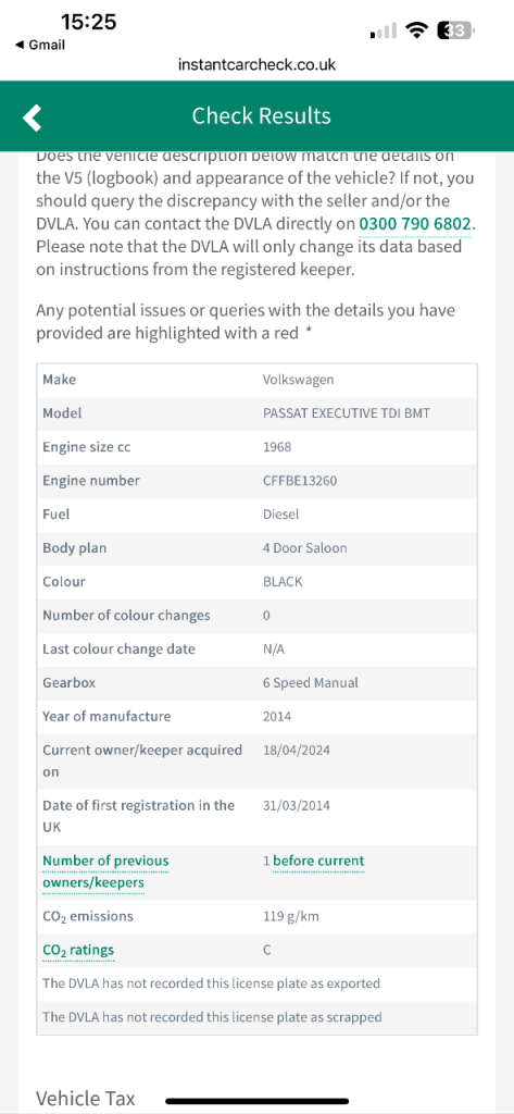 This vehicle has not been reported stolen, scrapped, exported or flagged as unroadworthy.