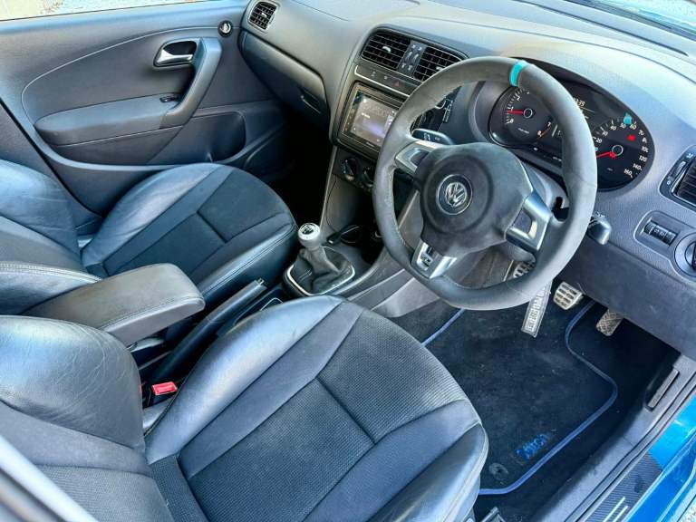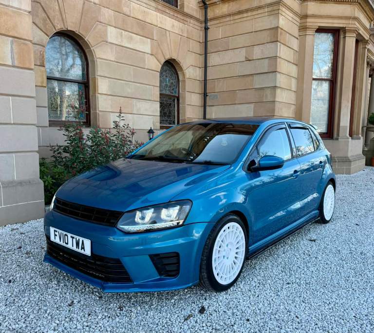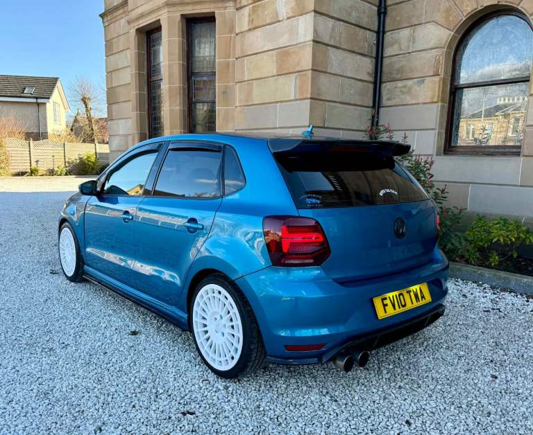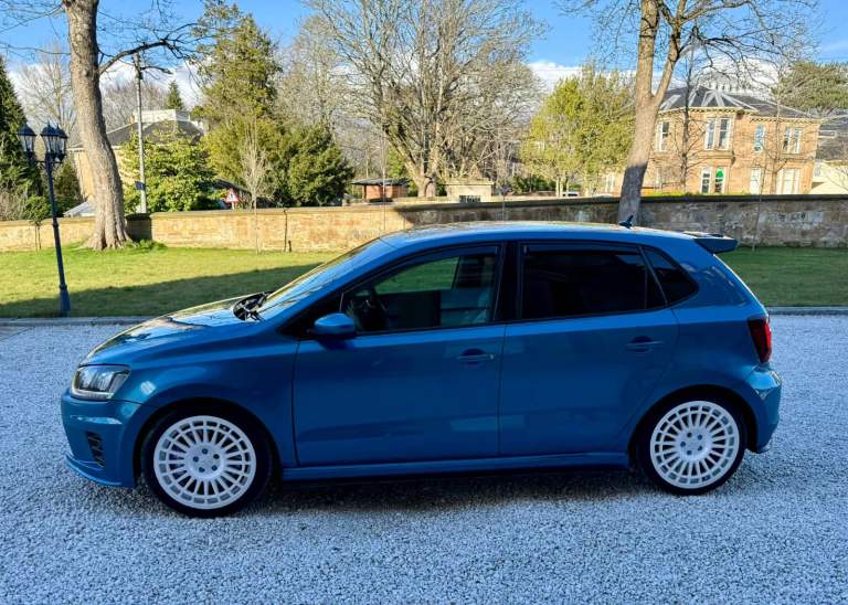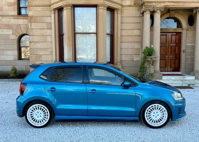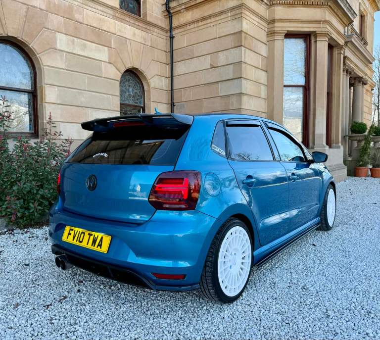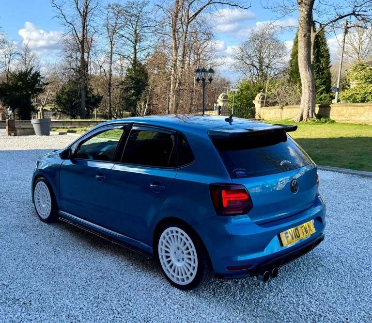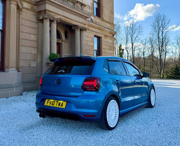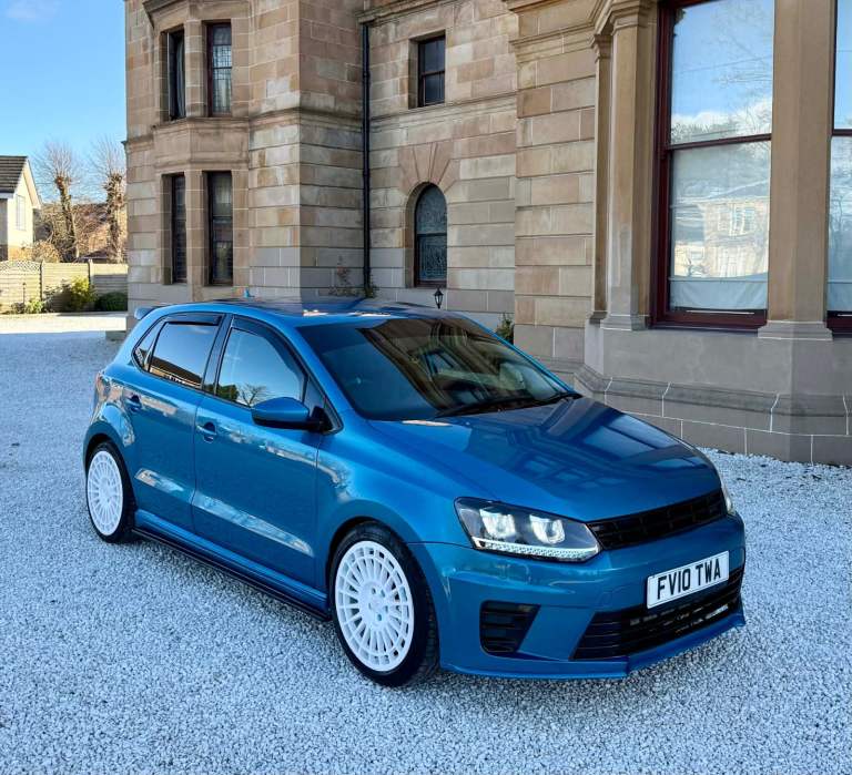 finished in BMW Long Beach Blue (with pink/blue flip in sunlight). This is not your average Polo — a well put together build with quality parts throughout.