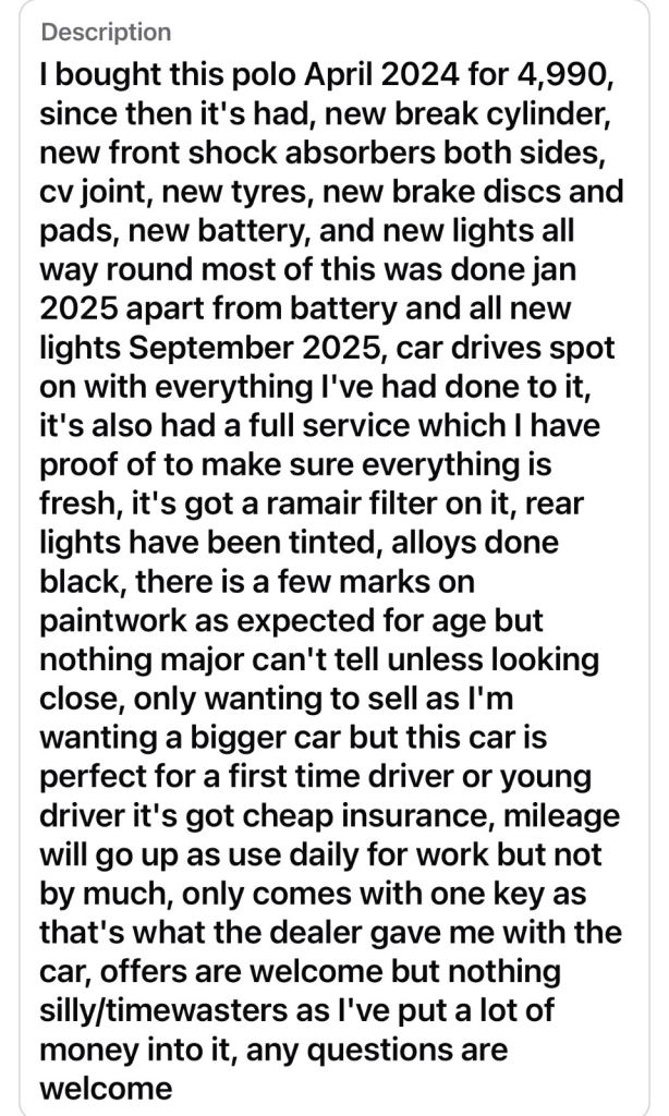Only fault with car is that driver window has come off the holding bracket, cheap easy fix just haven’t got round to doing it