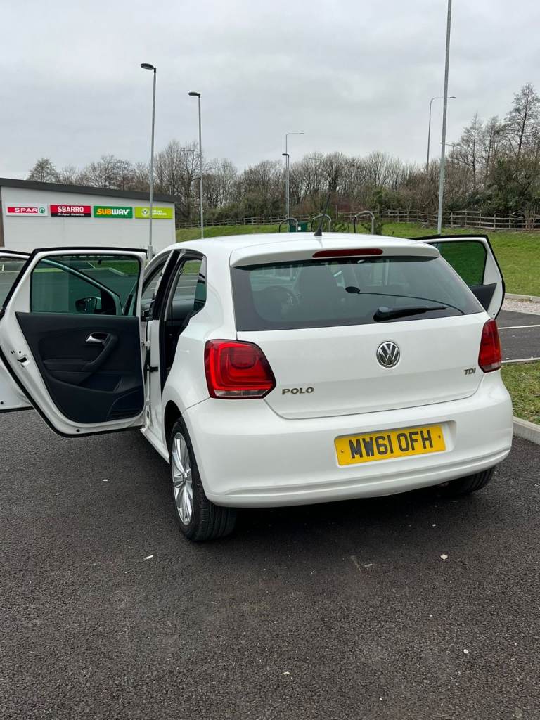 2012 61 reg VW Polo Match 1.2 Tdi diesel. White with Charcoal cloth interior and alloy wheels, Full 12 months MOT, 5 door, 5 seat, 4 electric windows, electric adjustable and heated mirrors and USB charging outlet and ISOfix. Full vanity pack and very clean, tidy car inside and out. Excellent runner and driver and well maintained.