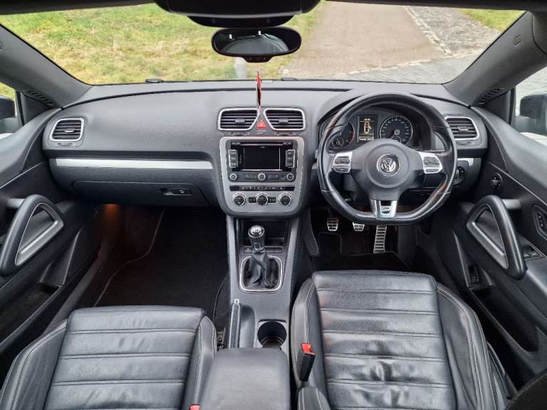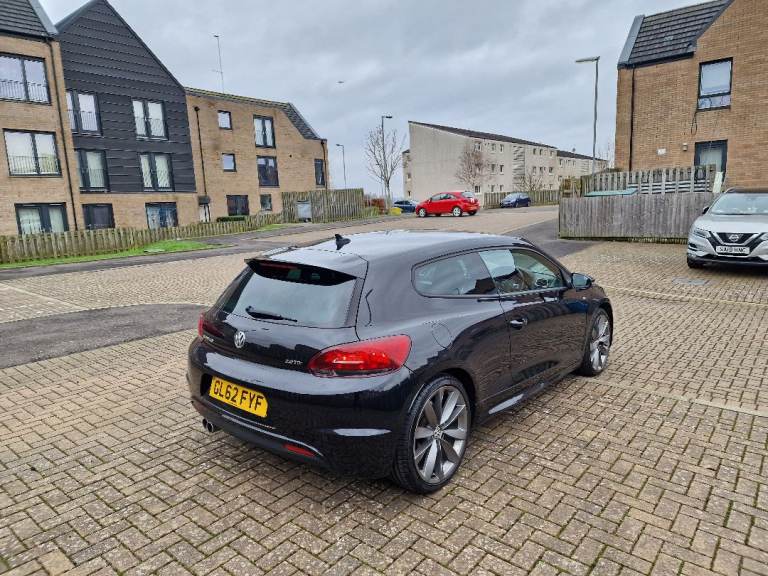 Stunning VW Scirocco R Line 2.0 TDI, in sapphire black with black leather seats - beautiful combo. It starts up first time everytime without fail, no warning lights displayed on the dash. There are no knocks, bangs or anything untowards from anywhere, engine is nice and quiet, it drives and stops as it should. 6 speed manual gearbox, goes in to every gear effortlessly and smoothly. Timing belt replaced at 50k at Arnold Clark and It is backed up with stamped up service history, 11 stamps in the book, most of which are main dealers. The clutch was replaced in 2021, reciept present totalling £740.68.