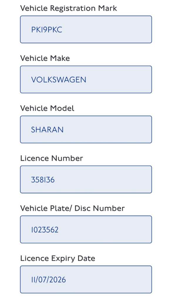 Volkswagen sharan pco licence