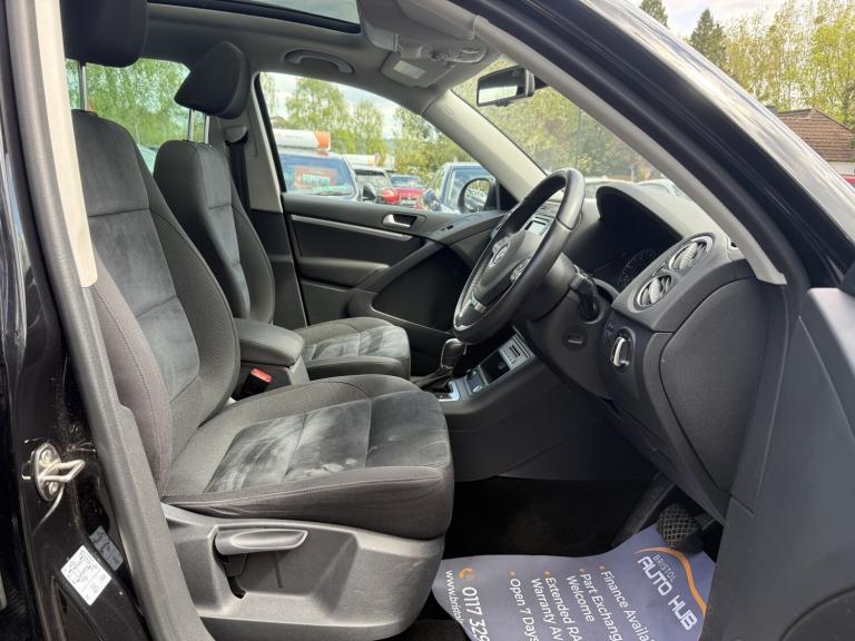 2015 Volkswagen Tiquan 2.0 TDI BlueMotion Tech Match Edition Diesel Automatic 5 Door SUV In Black With 73,176 Miles, MOT Until 10/11/2026, Great Service History (8 Recorded Services In Total) - Will Come With Fresh Service Upon Purchase, ULEZ Compliant - No Clean Air Zone Charges, Only 2 Former Keepers, Very Economical - 55.4 MPG (Extra Urban), Boot Capacity - 470 Litres, This VW Tiquan Has Been Well Look After And Would Make The Perfect Vehicle For Those Seeking A Reliable SUV With Great Running Costs And A Smooth And Comfortable Drive! This Popular Tiguan Comes With Extras Such As - Sun Roof, Panormaic Roof, Colour Touch Screen - 6.5in, Bluetooth, Satellite Navigation, DAB Radio, CD Player, 12V Socket, AUX-IN Socket, Dual Zone Electronic Climate Control with Automatic Air Recirculation, Cruise Control, Driver Alert System, Park Assist including Front and Rear Parking Sensors, Traffic Sign Recognition, Electrically Adjustable and Heated Wing Mirror, Automatic Headlights With Dusk Sensor, Automatic Dimming Rear View Mirror, Folding Table on Back of Front Seats, Front Sports Seats, Rain Sensor, Electronic Parking Brake with Auto Hold Function, Leather Multifunctional Steering Wheel, 18in Alloy Wheels - Sierra, Electric Windows, ISOFIX, Keyless Entry, Remote Central Locking, 2 x Remote Keys All Vehicles Are Fully Valeted With A 45 point inspection check undertaken, Part Exchange & Test Drive Welcome, Finance Available On All Cars - Come Direct For No Admin Fees & Competitive Prices - Good and Bad Credit Welcome - No Obligation Quote, 3 - 36 Month Warranty Available, Open 7 Days A Week. For More Pictures and Info Please Visit [Website URL removed] The specification is for a typical vehicle of this model and year when manufactured. Every effort has been made to ensure the accuracy of the information provided however there may be differences to the specification of the actual vehicle in stock, or the vehicle may have been modified. Do not rely entirely on the listed specification and please check to confirm that any features which may influence your decision to buy are present, and the actual specification of the vehicle meets your requirements and expectations.