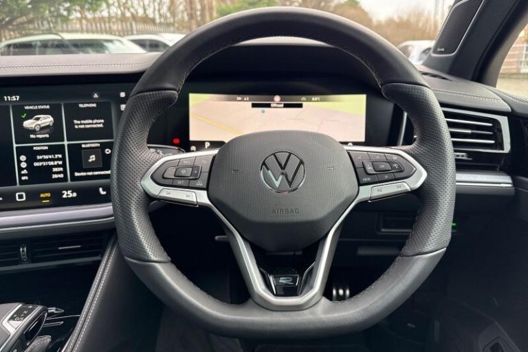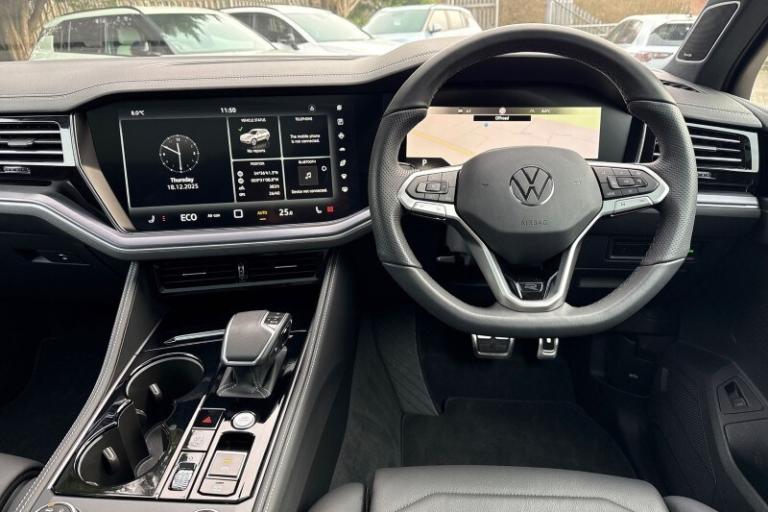 21'' 'Leeds' black diamond-turned alloy wheels, Tow bar, Space-saving spare wheel, Ambient Lighting Pack for R-Line, Air suspension, Black roof rails, Comfort package, Black Edition pack, Wireless App-Connect, Park Assist Pro with Area view, Lights and Vision pack, Memory seats