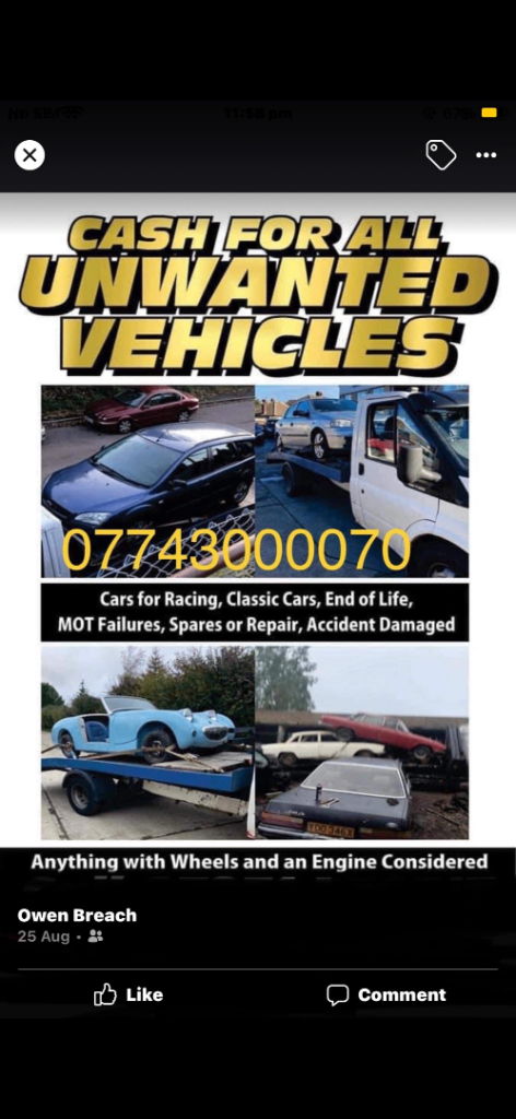 🚘CASH FOR CARS TODAY 🚘all scrap cars and vans bought fir cash cars vans trucks Lorrie’s camper vans