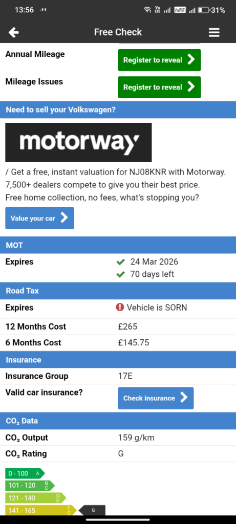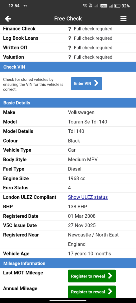 Buy the full report for guaranteed data accuracy, outstanding finance, valuation, milage check & VIN match for £9.99 (normally £19.99)