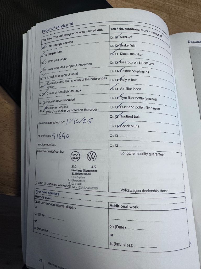 Full VW service history