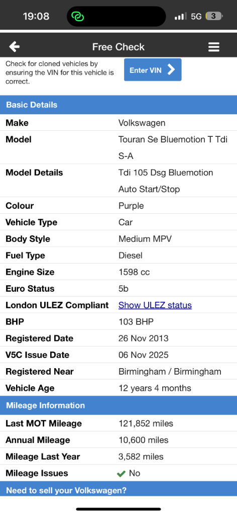 Buy the full report for guaranteed data accuracy, outstanding finance, valuation, milage check & VIN match for £9.99 (normally £19.99)