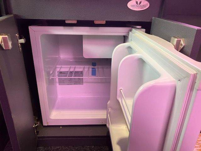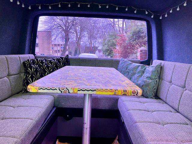 Interior has the vanproject conversion with U shaped seating area with removable table which quickly converts to a double bed. Built in storage cupboards and fridge. Electric hook up cable included.