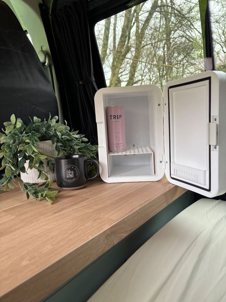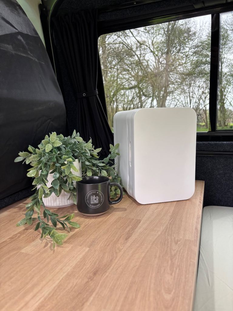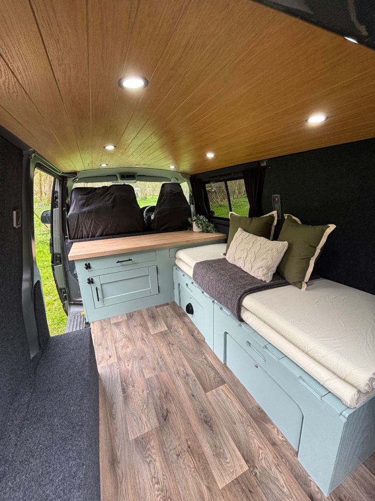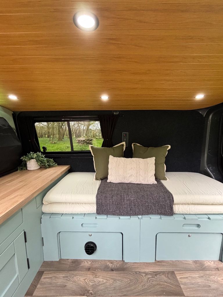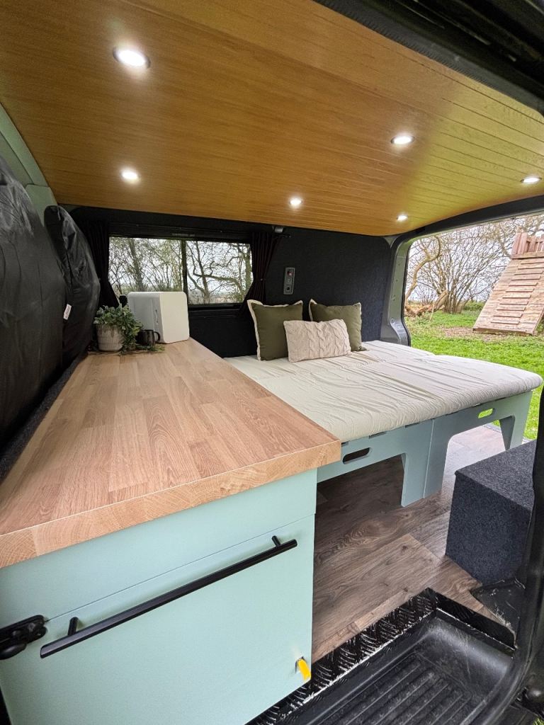 12 volt electrical supply, leisure battery (incl. usb charging points), spotlights on an oak roof, a diesel heater with the fuel supply connected to the main fuel tank.