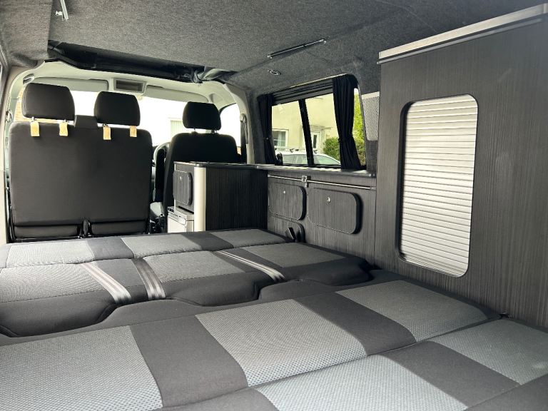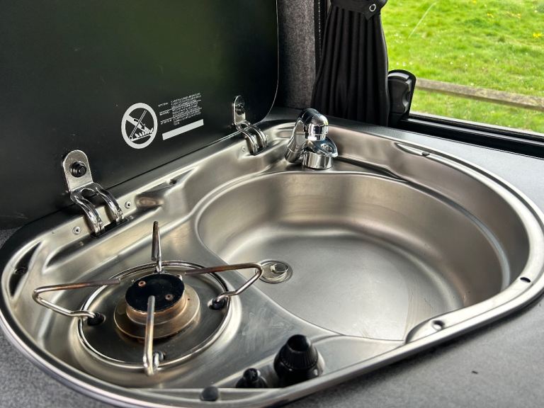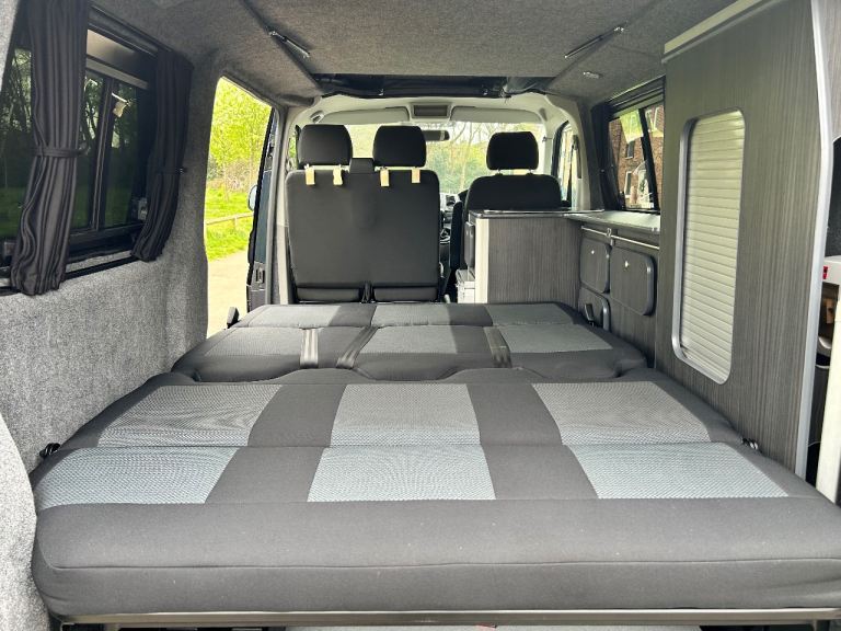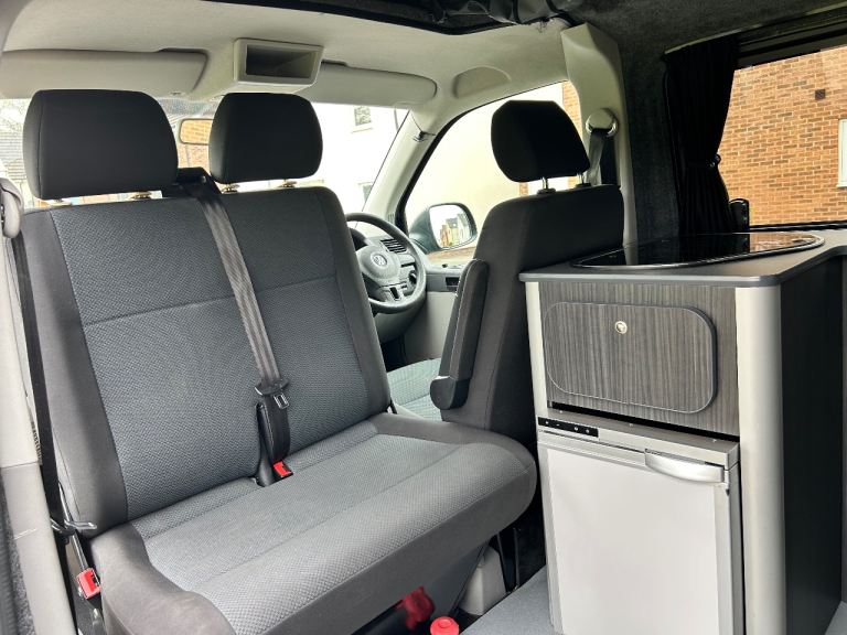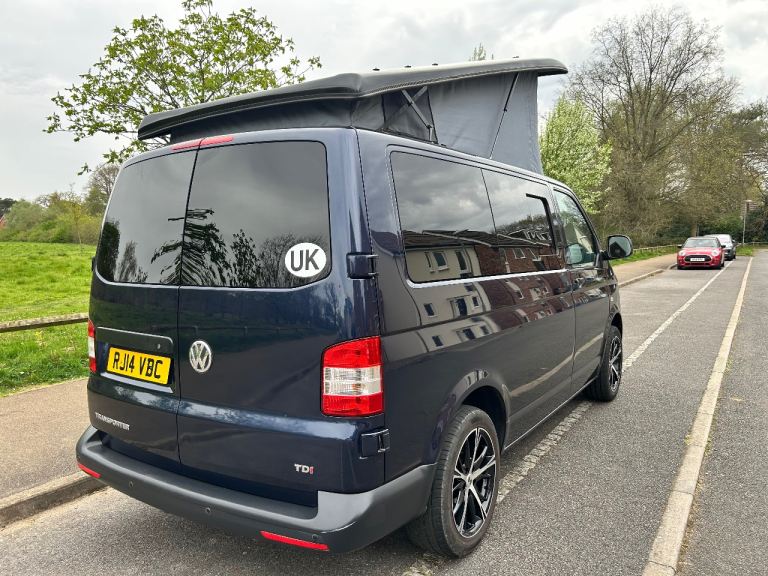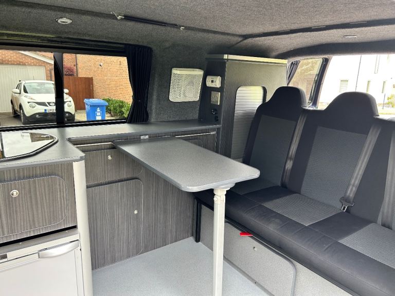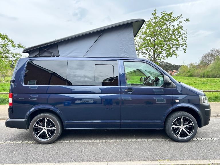 We’re selling our very much loved campervan due to a house purchase. 3 previous owners. We are the only owners since its conversion 3.5 years ago. 6 speed. Air conditioning. Tow bar (not currently fitted). Front double swivel seat to create a 5 seater lounge area. Rock and roll full sized double bed. Pop top roof with double mattress. Diesel heater. Smart battery charger and maintainer fitted for leisure battery. Fridge. Single gas hob. Sink with electric tap. Awning rail fitted. 240v 3 pin plug works when connected to mains. Dark tinted windows. Will come with levelling ramps, front external blinds, fly screen for main sliding door. Rear parking sensors. VW service history to 89000 miles, full non VW service history thereafter. Very well maintained vehicle throughout its life. 2 new front tyres. 12 months MOT. Recently serviced. New clutch and cam belt change. Excellent condition. Very clean inside and out. Pop top canvass is in very good condition - has had a couple of small repairs. There is a very slight indentation on the side sliding door which is barely noticeable. Otherwise all bodywork is in very good condition. Test drive welcome on presentation of valid fully comprehensive insurance.