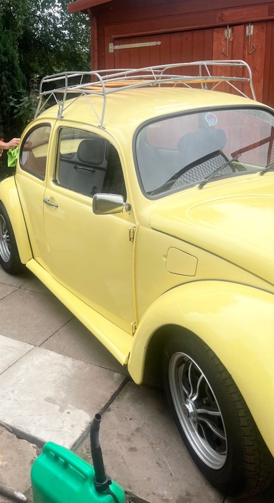 Beautiful Malmo is up for sale, she’s a cal look in style sitting on some big Porsche rims. 1 piece front windows, needs new seals & regulators as still has standard on. Narrow front beam, new Porsche discs and hubs. Blade bumpers, very cool deck lid ( never seen one the same) four into one sports exhaust for better sound. Front drivers seat has small tear to back, back seats and passengers good. Roof rack not included(sold)Sat through the Cccold winter so she’s had a full service including, plugs, points, condenser, dizzy cap, leads & chrome pan filter. Lots of spare brand new parts along with uprights for bumpers to change style. Last photo is the Porsche wheels currently on the car. First to see her will fall in love