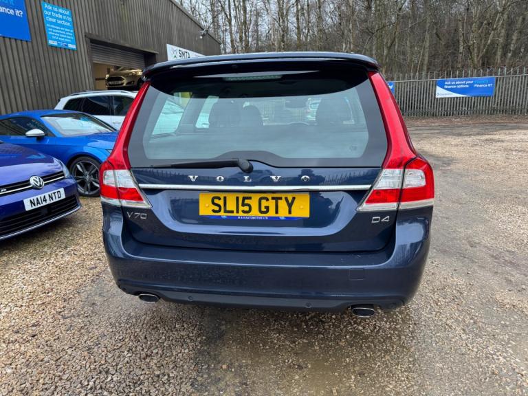 15 REG VOLVO V70 SE NAV D4 TURBO DIESEL ESTATE **ULEZ COMPLIANT** This lovely V70 has only had 2 former keepers with a super 14 stamp service history and has a current mot till June, very nice Deep Blue metallic paint with lovely full Black leather interior, heated seats and steering wheel, air con, cruise control, super light power steering, power tailgate, electric windows+mirrors, blind spot warning, remote central locking with a spare key, the nicer alloys, front led fogs, Factory Sat Nav with the upgraded quality stereo system with media connection, dark glass, just to many extras to list, as you can see from the pictures this big Volvo is in super clean condition both inside and out for its year and miles a credit to the previous owners also very easy and comfortable to drive and gives amazing fuel economy with wonderful performance and only 20 ROAD TAX this car will make some lucky person very happy at this money a bargain at 5295 ( NO TEXTS CALLS ONLY PLEASE )**The car is located in Bathgate**