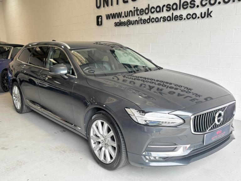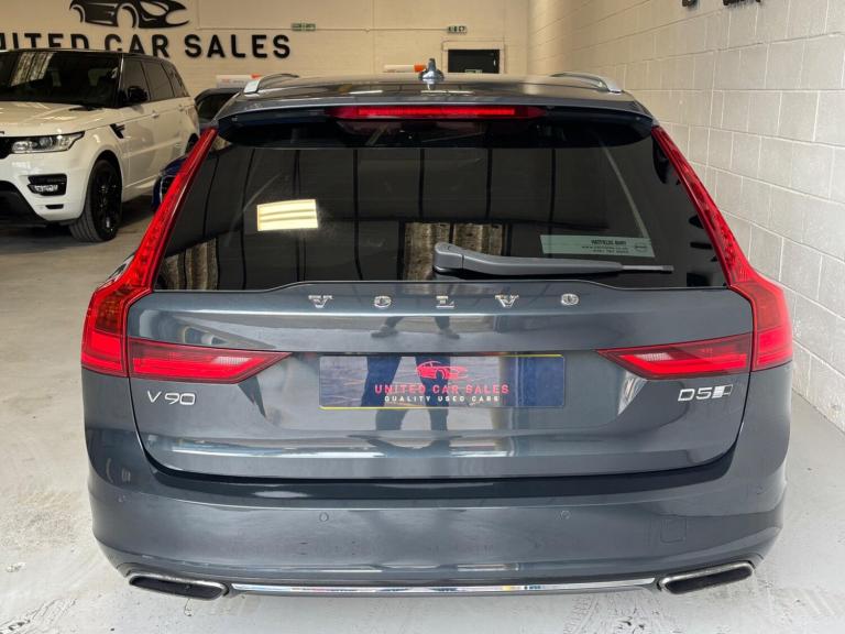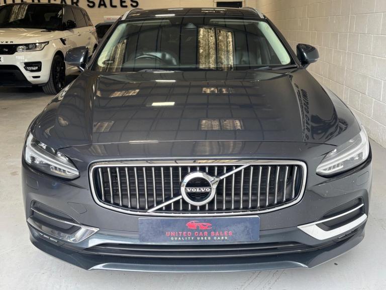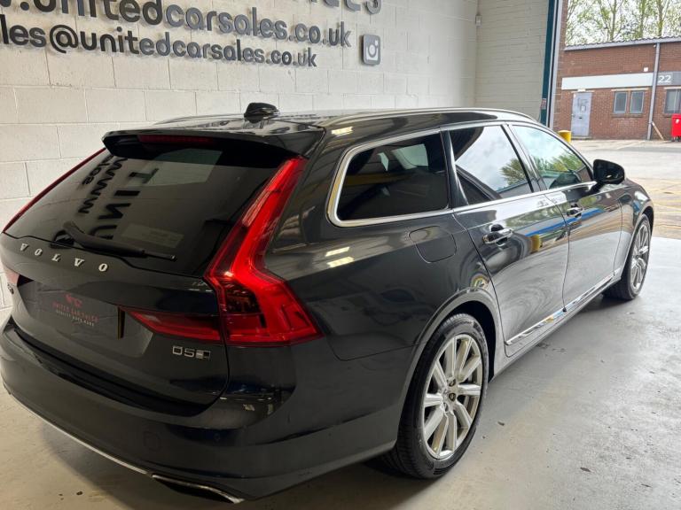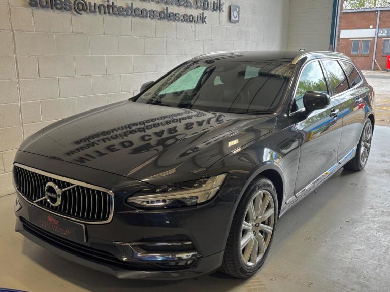 This 2017 Volvo V90 D5 Inscription boasts a full dealership service history from its single owner, offering peace of mind.Mega specification. This four wheel drive estate is powered by a 2.0 litre Euro 6 diesel engine, delivering impressive performance with a 0-60mph time of just 6.9 seconds. The Inscription trim level ensures a premium experience, enhanced by features such as a heated steering wheel and heated front seats, perfect for colder journeys. Connectivity is made easy with the Bluetooth handsfree system, and parking is simplified thanks to the rear park assist.With a substantial towing weight of 2200 kg and generous boot space, this Volvo V90 is as practical as it is refined. The inclusion of a 12 month MOT on purchase and a 3 month warranty further underlines its excellent condition and value. These attributes, combined with its powerful yet efficient engine and advanced features, position this V90 as a superior choice for those seeking a capable and comfortable estate car.