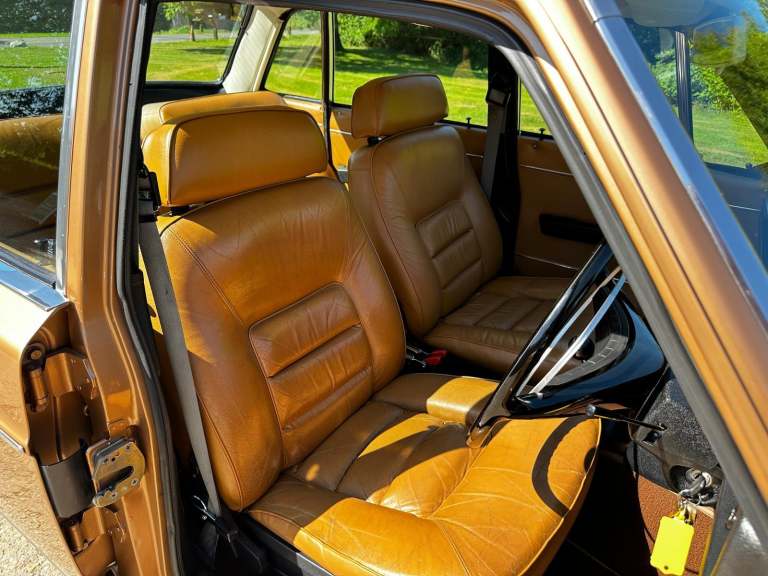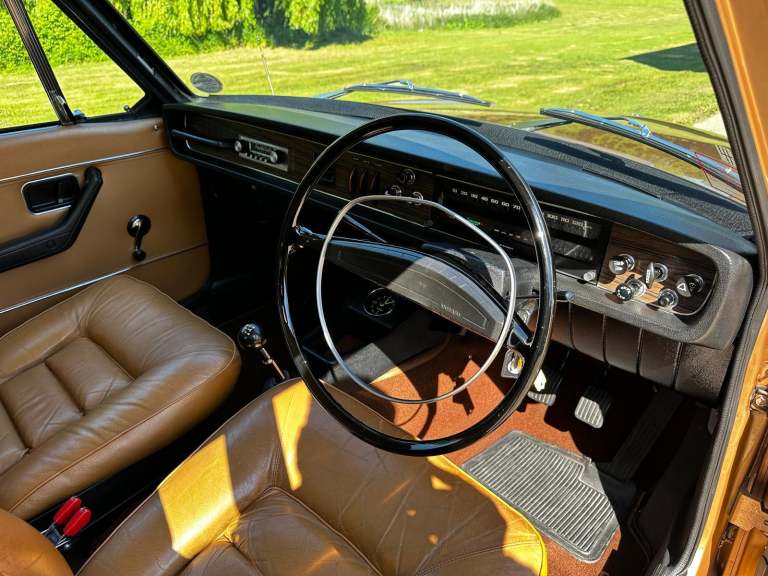 With us at RFH Classics we have this 1971 (J) Volvo 164 4 Door that is finished in Gold Metallic with the Tan Leather interior and a low recorded mileage of just 46,400 miles. Over the past 2 years we have sold four of these Volvo 164 but this is without doubt the nicest example we have had the pleasure of offering and with the lowest recorded mileage. Our investigations have lead us to believe there are only 18 still remaining on the UK roads so this is a truly rare opportunity for collectors. This particular car was supplied new by William Yeates Ltd of Leicestershire and first registered in March 1971. It comes complete with a couple of very desirable factory options of a sunroof and the 4 speed manual gearbox with overdrive. Records indicate that in 2013 the car underwent a light restoration, including a repaint in its original colour and finished to a spectacular standard. We believe, based on the condition and paperwork supplied, that the mileage is likely genuine, though it cannot be fully verified.