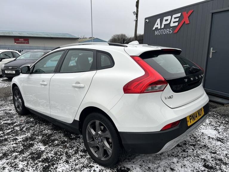 17in Alloy Wheels - Larenta - Silver Bright,Crystal White,Frameless Auto Dimming Rear View Mirror,Rear Park Assist Camera,Spare Wheel and Jack Kit,Volvo On Call, 12V Socket - Front, 12V Socket - Rear, Amplifier 45W x4, Bluetooth Handsfree System, Colour Display Screen - 5in, DAB - Digital Audio Broadcasting Radio, Radio/CD, Speakers x8, USB Input x1, Cruise Control, IDIS - Intelligent Driver Information System, Information Centre, Tyre Pressure Monitoring System, 17in Alloy Wheels - Larenta - Grey, Door Mirrors - Glossy Black, Door Mirrors - Power Folding with Ground Lights, Electric Windows - Auto Open and Close, Electric Windows - Front and Rear, Glossy Black Window Trim, Locking Wheel Nuts, Rear Diffuser - Unique Cross Country, Roof Rails - Silver, Roof Spoiler, Side Marker Illumination, Tyre Sealant Kit and Compressor, Headlight Cleaning System, Headlights - Active Bending, Headlights - Levelling System, Headlights - Tunnel Sensor, Headlights - Xenon, High Level LED Brake Light, Home Safe and Approach Lighting, LED Day Running Lights, A-Pillar Parking Ticket Holder, Armrest - Front Centre with Storage, Armrest - Rear Centre, Climate Control - Electronic, Cupholders - Front, Cupholders - Rear, Door Sill Tread Plates - Front, Floor Mats, Forward Folding Front Passenger Seat, Front Door Side Step Lighting, Front Footwell Lighting, Front Reading Lights, Gear Knob - Leather, Glovebox - Cooled, Headlining - Blond, Height and Reach Adjustable Steering Column, Interior Trim - Copper Dawn, Lockable Glovebox, Multicolour Theatre Lighting, Pollen Filter, Rain Sensor, Rear Reading Lights, Rear Theatre Lights, Seats - Front Height Adjustment, Seats - Front Lumbar Support, Steering Wheel - 3 Spoke Leather with Chrome Trim, Steering Wheel Remote Audio Controls, Versatile Split Folding Rear Seats - 60-40, Dynamic Chassis, Speed Limiter, Speed Sensitive Steering, ABS - Anti-Lock Brake System, Adaptive Brake Lights, Advanced Stability Control and Torque Vectoring, Airbags - Drivers Dual Stage, Airbags - Dual Chamber SIPS, Airbags - Passenger Dual Stage, Anti-Theft Alarm, Central Locking - Remote, City Safety, Deadlock System, Driver Knee Airbag, Dynamic Stability Control, EBA - Emergency Brake Assistance, Hill Start Assist, IC - Inflatable Curtains, Immobiliser, ISOFIX Child Seat Preparation - Rear, Level Sensor, Passenger Airbag Cut-Off Switch, Pedestrian Airbag Technology, SIPS - Side Impact Protection System, Traction Control, Visible VIN Plate, Volume Sensor, Warning Triangle, WHIPS - Whiplash Protection System - Front Seats.Volvo V40 Cross Country 1.6 D2 Lux Hatchback 5dr Diesel Manual In White. Low Mile's Only 84484, Comes With 12 Months MOT, Only 2 Previous Owners, Full Service History with 7 Stamps and 2 Key's. Lovely Looking Vehicle, Outstanding Condition for its age. Low Miles. Very Economical.Vehicle comes very well equipped from factory including, Alloy Wheels, Air Conditioning, Auto Climate Control Automatic Lights, Automatic Wipers, Cruise ControlDual Zone Climate, Full Leather Interior, Radio CD, Electric Windows, Central Locking, Aux Connection, Power Steering, Traction Control, USB Connection, Electric Mirrors and More. Why Choose Apex Motors At Apex Motors, we put customers first. Every vehicle is HPI checked and prepared to the highest standards for your peace of mind. We are FCA regulated, giving you confidence that all our finance options are handled safely and professionally. We provide flexible finance options, make it easy to sell your car today, and offer nationwide delivery so you can buy with confidence wherever you are. 12-month nationwide warranty available for added reassurance.Buying With Apex MotorsApex Motors is a family-run business with decades of experience in the motor trade. Based in Gateshead, Newcastle upon Tyne, we take pride in offering honest advice, exceptional service, and a relaxed, no-pressure environment - helping you find the right car, not just any car.