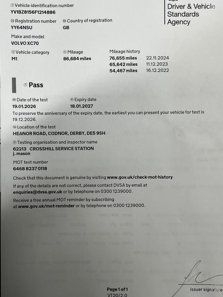 ***9 SERVICES*** 2 OWNERS FROM NEW*** BOTH REMOTE KEYS*** MOT JANUARY 2027*** NATIONWIDE WARRANTY*** Genuine 2 owners from new 2014 Volvo XC70 Diesel Automatic with only 86712 Genuine miles. Our car comes with comprehensive service history and was first serviced at 8319 miles in October 2015, 15039 miles in October 2016, 21788 miles in October 2017, 28502 miles in October 2018, 36769 miles in October 2019, 42077 miles in October 2020, 46865 miles in December 2021, 74590 miles in October 2024 and again at 84474 miles in September 2025. The car also comes with both remote keys, full set of Genuine Volvo carpet mats and an Mot until January 2027 with no advisories.