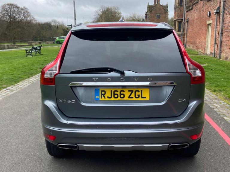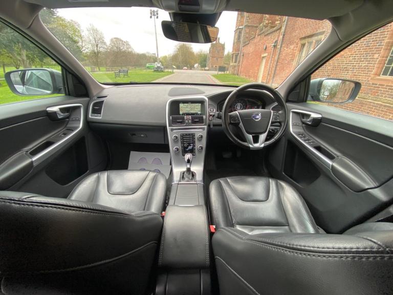 66 REG + 1 FORMER KEEPER + FSH (9 STAMPS IN BOOK) + MAINLY MOTORWAY MILES + SAT NAV + FULL LEATHER INTERIOR + CRUISE CONTROL + PARKING SENSORS + CAMBELT KIT DONE + DAB RADIO + HEATED SEATS + REAR PRIVACY GLASS + EURO 6 + STOP START + ELECTRIC BOOT + ROOF BARS + POWER FOLD MIRRORS + Bluetooth Preparation + Climate Control + Tyre Repair Kit + Alloy Wheels + Metallic Paint + 2 KEYS + GENUINE EXAMPLE .... +++ THIS CAR HAS BEEN MAINTAINED REGARDLESS OF COST, ITS DONE MOTORWAY MILES & IS A GOOD EXAMPLE THROUGHOUT, HPI CLEAR, PLEASE CALL FOR MORE INFO, DELIVERY SERVICE AVAILABLE NATIONWIDE AT A VERY COMPETITIVE PRICE +++ MANY MORE CARS IN STOCK PLEASE VISIT OUR WEBSITE [Website URL removed] +++With only one previous owners and a clear vehicle history check, this 2016 Volvo XC60 D4 SE Nav presents a compelling proposition. This stylish SUV is equipped with a 2.0 litre Euro 6 diesel engine, offering an impressive fuel economy of 60 miles per gallon. Inside, you'll find comfortable Leather Faced upholstery in Off Black, complemented by electronic climate control and automatic headlights activated by a tunnel sensor. For convenience and security, it features rear park assist with rear sensors and dark tinted windows on the rear side doors and cargo area, all contributing to a refined driving experience.This XC60 stands out with its excellent performance and efficiency. Its low CO2 emissions are a testament to its modern engineering, making it a more environmentally conscious choice. The acceleration from 0 to 60 miles per hour in just 7.6 seconds demonstrates its responsive power, while the large boot space ensures practicality for all your needs. These highlights collectively indicate that this Volvo XC60 offers a superior blend of performance, economy, and utility compared to other vehicles in its class.