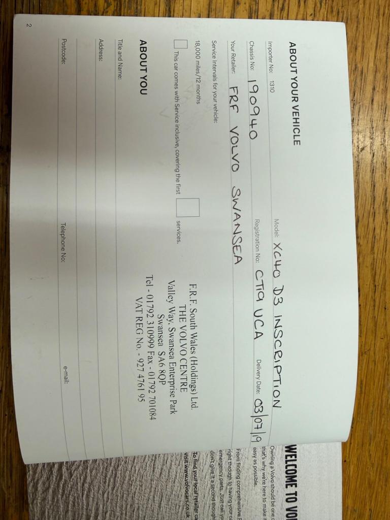 Posting for 11+ years2019 Volvo XC40 2.0 D3 Inscription Pro 5dr Geartronic ESTATE DIESEL Automatic