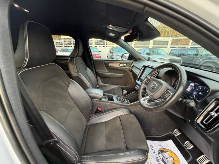 T3 R Design 1.5 Manual. Metallic Glacier Silver (White/Grey) with contrast Black roof, Black Charcoal R Design leather and Suede, polished and Black alloys, cruise control and, adjustable Drive Modes, climate control, roof rails, Navigation, DAB, Bluetooth, digital dashboard and much more. Covered 61,500 miles with service history and freshly serviced before sale, just two owners & beautiful condition throughout All of our vehicles are ready for same day drive away. CASTLE MOTORS purpose-built showroom & forecourt has a wide range of cars for sale, including some of the worlds most prestigious automobiles. Founded in 1972, we are open 7 days a week. All of our vehicles are presented to the very highest standards possible having gone through our own comprehensive multi-stage preparation. Supplied finance figures are only a guide. Every effort has been made to ensure the accuracy of the above info but errors can occur please check with our sales team. .12.3in Active TFT Crystal Drivers Information Display, 12V Socket - Front Tunnel Console and Cargo Compartment, 18in Alloy Wheels - 5 Double Spoke Diamond Cut Matt Black, 2-Zone Electronic Climate Control with Cooled Glovebox and Rear Air Vents, 9in Centre Console Portrait Touch Screen, ABS - Anti-Lock Brake System, Adaptive Brake Lights including High Level LED Brake Light, Adjustable Steering Force, Ambient Door and Instrument Panel Lighting, Anti-Theft Alarm including Immobiliser - Volume Sensor and Level Sensor, Autodimming Interior Mirror, Autofolding Heated Power Door Mirrors, Automatic Headlight Levelling System, Automatic LED Headlights with Active High Beam incorporating Day Running Lights, Black Headlining, Black Stone Door Mirrors, Black Stone Roof, Bluetooth Handsfree System, Care Key with User Defined Top Speed, Centre Console Cupholders and Storage, City Safety, Cruise Control, Cutting Edge Aluminium Inlays, DAB - Digital Audio Broadcasting Radio, Dark Tinted Windows - Rear Side Windows and Cargo Area, Drive Mode Settings, Driver Knee Airbag, Drivers Side Lower Dashboard Credit Card Storage Compartment, Dual Stage Driver and Passenger Airbags, Electronic Climate Control with CleanZone Air Quality System with Pollen Filter, First Aid Kit, Front Aluminium Tread Plates, Front and Rear Power Windows, Front Door Pocket and Front Cupholder Illumination, Front Footwell Illumination, Front LED Foglights, Front Reading Lights and Theatre Lighting, Front Seat Cushion Extensions, Gear Knob - Leather, Glacier Silver, Glovebox Bag Hook, Height and Reach Adjustable Steering Column, Height and Tilt Adjustable Driver Seat, High Gloss Black Deco Lower Front Bumper, High Gloss Black Front and Rear Skid Plate, High Gloss Black Mesh Front Grille with High Gloss Black Surround, High Gloss Black Window Trim Surround, Hill Descent Control, Hill Start Assist, Home Safe and Approach Lighting, IC - Inflatable Curtains - Full Length, Illuminated Vanity Mirrors, ISOFIX Attachment - Outer Rear Seats, Key Integrated Remote Control Central Locking including Fuel Flap with Deadlocking System and Auto Open-Close Power Windows, Keyless Start, Lane Keeping Aid with Driver Alert Control, Leather-Nubuck - Charcoal, Load Protection Net, Lockable Glovebox Compartment with Illumination, Locking Wheel Nuts, Luggage Compartment Illumination, Mechanical Child Locks - Rear Doors, Multi-Directional Lumbar Support, Multicolour Theatre Lighting, Oncoming Lane Mitigation, P-SIM Card - Acce