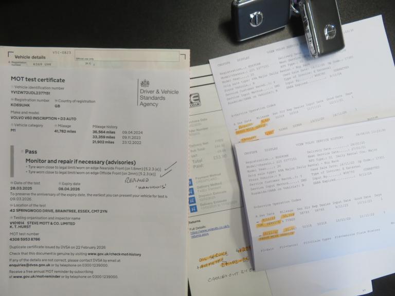 2020 (69) Volvo V60 2.0 D3 Inscription Plus Geartronic Automatic 5dr Estate.*ULEZ COMPLIANT*. Only 2 Former Keepers with Comprehensive Service History at 1k, 9k, 21k, 33k, & 41k. Premium Tyres All Round. MOT: 08/04/2026 (Advisories Done). New MOT & Service on Sale! Top Spec 'Inscription Plus' Edition' with Keyless Entry & Start, Full Electric Leather Memory Seats, DAB Radio/USB/Bluetooth+Voice, Android/AppleCar Play, Sat Nav, Front & Rear Park Sensors, Park Pilot, Lane Assist, Adaptive Cruise Control/Speed limiter, Power Boot, Electric Tow Bar, LED Daytime Lights, Auto Lights, Dual Zone Climate Control A/C, 18"" Diamond Cut Alloy Wheels, Power Folding Electric Mirrors, Electric Windows, 2 x Remote Keys, Isofix. Have confidence buying from one of Colchester's oldest car dealerships established in 1973. Why not read what our customers say about us on Google reviews and why people choose to buy from us.-HPI AUTOCHECK CLEAR.-6 MONTHS WARRANTY.-EXTENDED 12/24 MONTH NATIONWIDE WARRANTY INC. BREAKDOWN RECOVERY FROM JUST £250.00.-NATIONWIDE DELIVERY & FINANCE AVAILABLE.