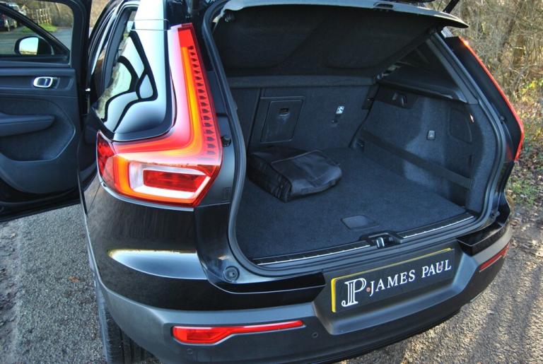 Stunning 2020 Volvo XC40 R-Design Plug in / Petrol / Hybrid finished in Onyx Black metallic with Black Half Leather & Suede interior. This Volvo comes with a Full Volvo Service History and a superb specification featuring Reverse Camera Cruise Control Power Tailgate Power Fold Mirrors Wireless Phone Charging Bluetooth Phone & Audio Lane Assist DAB Radio Paddle Shift Front & rear Parking Sensors Keyless Start James Paul Car Sales is a family run business in a small village of Bucks Green conveniently situated on the Surrey and Sussex border. Established for over 35 years every car we offer is carefully hand selected and will come with a comprehensive provenance check. All of our vehicles are subject to a thorough pre delivery inspection through our workshops including a fresh MOT and service where required. Please ask us about our extremely competitive finance packages or Visit our website [Website URL removed] to create your own Finance Quote and Apply to help you fund your new car. Part exchanges welcome either way if you are looking to trade up or down. Please note that we do not accept reservations on cars via third party sites, if you wish to put a deposit on a car, please call 01403 823723 and speak to a member of the James Paul Car Sales team.. 12.3in Active TFT Crystal Drivers Information Display,12V Socket - Front Tunnel Console and Cargo Compartment,19in Alloy Wheels - 5 Double Spoke - Diamond Cut - Matt Black,2-Zone Electronic Climate Control with Cooled Glovebox and Rear Air Vents,4.5m Charge Cable with 3 Pin Plug,9in Centre Console Portrait Touch Screen,A-Pillar Parking Ticket Holder,Adaptive Brake Lights including High Level LED Brake Light,Adjustable Steering Force,Ambient Door and Instrument Panel Lighting,Anti-Theft Alarm including Immobiliser - Volume Sensor and Level Sensor,Auto Dimming Rear View Mirror,Autofolding Heated Power Door Mirrors,Automatic Headlight Levelling System,Automatic LED Headlights with Active High Beam incorporating Day Running Lights,Black Headlining,Black Stone Door Mirrors,Black Stone Roof,Bluetooth Handsfree System,Bright Metal Luggage Compartment Threshold,Centre Console Cupholders and Storage,City Safety,Cruise Control,Cutting Edge Aluminium Inlays,DAB - Digital Audio Broadcasting Radio,Dark Tinted Windows - Rear Side Windows and Cargo Area,Drive Mode Settings,Driver Knee Airbag,Drivers Side Lower Dashboard Credit Card Storage Compartment,Dual Integrated Exhaust Pipes with High Gloss Black Surround,Dual Stage Driver and Passenger Airbags,Electric Front Axle Drive,Embossed Rear Side Roof Pillar,First Aid Kit,Front Door Pocket and Front Cupholder Illumination,Front Footwell Lighting,Front LED Foglights,Front Reading Lights - Theatre Lighting and Glovebox Illumination,Front Seat Cushion Extensions,Front and Rear Power Windows,Glovebox Bag Hook,Height Adjustable Passenger Seat with Multi-Directional Lumbar Support,Height and Reach Adjustable Steering Column,Height and Tilt Adjustable Driver Seat with Multi-Directional Lumbar Support,High Gloss Black Deco Lower Front Bumper,High Gloss Black Front and Rear Skid Plate,High Gloss Black Mesh Front Grille with High Gloss Black Surround,High Gloss Black Sensus Surround Deco,High Gloss Black Window Trim Surround,High Gloss Centre Tunnel Deco,Hill Descent Control,Hill Start Assist,Home Safe and Approach Lighting,IC - Inflatable Curtains - Full Length,ISOFIX Attachment - Outer Rear Seats,Illuminated Vanity Mirrors with Ticket Holder,Interior Trim - R-Design Aluminium,Key Integrated Remote Control Central Locking including Fuel Flap with Deadlocking System and Auto Open-Close Power Windows,Keyless Start,Lane Keeping Aid with Driver Alert Control,Leather Coloured Key Integrated Remote,Load Protection Net,Lockable Glovebox,Locking Wheel Nuts,Luggage Compartment Illumination,Mechanical Child Locks - Rear Doors,Multicolour Theatre Lighting,Oncoming Lane Mitigation,P-SIM Card - Access to 1 Year - 100GB of Data,Passenger Airbag Cut-Off Switch,Perforated Leather Gear Knob,Perforated Leather Steering Wheel,Power Parking Brake with Auto Hold Function,Private Locking for Tailgate,R-Design Front Door Tread Plates,Rain Sensor - Automatic Windscreen Wiper Activation,Rear Armrest with Storage and Cupholders,Rear Clothes Hook,Rear Park Assist,Rear Reading and Courtesy Lights,Recharging Port Located in Nearside Front Wing,Road Sign Information Display,Roof Antenna,Roof Rails - Integrated High Gloss Black,Roof Spoiler,Run-Off Road Mitigation,Run-Off Road Protection,SIPS - Side Impact Protection System,SIPS Airbags - Front Seats,Seatbelt Reminder and Pretensioners,Sensus Connect with High Performance Sound,Sensus Navigation,Slippery Road and Hazard Light Alert,Speed Limiter,Speed Sensitive Steering,Sports Chassis,Sports Floor Mats,Sports Pedals,Stability and Traction Control,Steering Wheel Remote Infotainment Controls,Tailgate Illumination,Tyre Pressure Monitoring System,Tyre Sealant Kit and Compressor,Underfloor Cargo Storage,Vehicle
