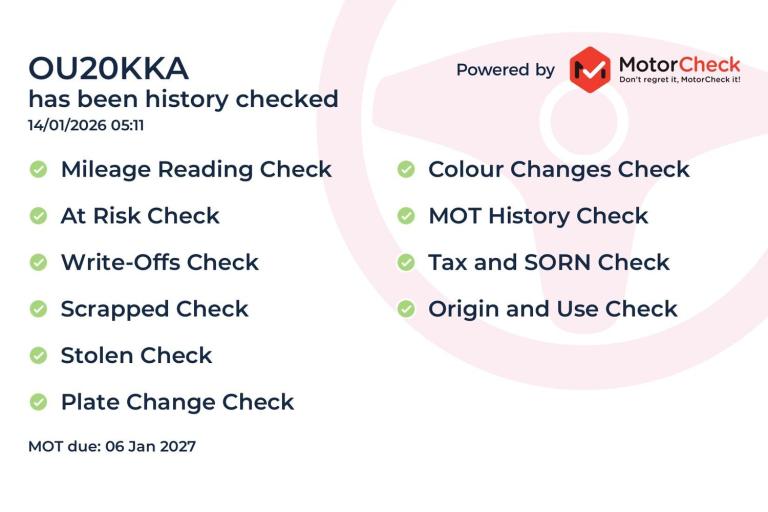 Our vehicle history check is provided for guidance only. Please check all the details with the seller before purchasing