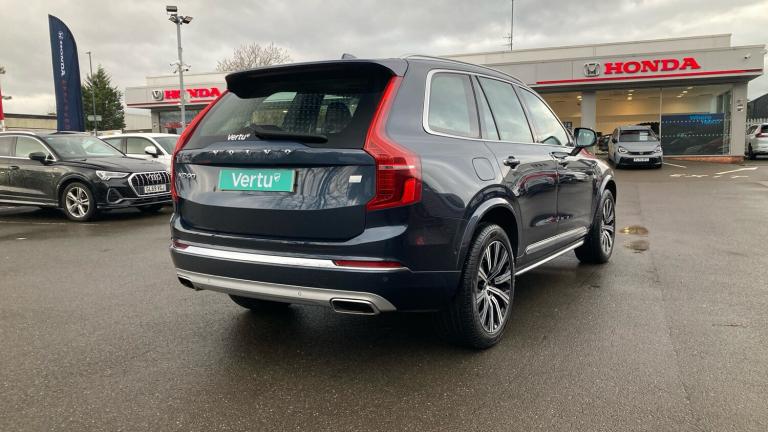 Finished in Denim blue with heated front and rear leather seats. This is Scandinavian sophistication at its finest with the Volvo XC90 T8 Recharge Inscription. This flagship SUV blends effortless performance, intelligent electrification and uncompromising luxury, creating a vehicle that leads by example in every sense. Powered by a cutting-edge plug-in hybrid powertrain, the XC90 T8 combines a responsive petrol engine with an electric motor to deliver impressive performance with remarkably low emissions. Enjoy smooth, silent electric driving for shorter journeys, while the intelligent AWD system ensures confidence and control whatever the road or weather throws your way. When you step inside, you’re greeted by a sanctuary of calm. The Inscription trim elevates every journey with premium materials, finely crafted details and exceptional comfort for all five occupants. From the beautifully designed cabin and intuitive touchscreen infotainment system to advanced climate control and ambient lighting, every element has been thoughtfully designed around you. Safety remains at the heart of Volvo engineering. This XC90 is packed with advanced driver assistance and safety technologies. Contact us now at Derby Honda to arrange your personal viewing of this vehicle. Decide WHEN you would like to experience this vehicle by giving us a call to make an appointment to test drive. Finance and part exchange facilities available. All our Vertu Select vehicles give you reassurance of knowing that all cars have to meet our high standards before they reach the forecourt. DON'T MISS OUT ON THIS CAR. Contact us now! We are open Monday to Friday 8.45am to 6.30pm and Saturday 8.45am to 5pm. Please give us a call for directions or our postcode for your sat nav is DE21 4SX. Derby Honda is centrally located just 12 miles from the M1 motorway Junction 25 if travelling from the South and 29 miles from the M1 motorway Junction 28 if travelling from the North. The nearest train station is Derby (DBY). The nearest airport is Nottingham East Midlands (EMA) - COME AND VISIT US TODAY!.Air Conditioning, Climate Control, Metallic Paint, Cruise Control, Satellite Navigation, Leather Seats, Heated Seats, DAB Radio, Bluetooth, Panoramic Roof, Parking Sensors, USB, Park Assist, Sun Roof, Electric Seats, Memory Seats, Diamond Cut Alloy Wheels, Adaptive cruise, Keyless Entry-Push Button Start, 7 Seats, Rear Camera, Electric Opening Tailgate, Auto Lights, Electric Folding Mirrors, Lane Departure, Lane Keeping Assist, Pre Crash Prevention& 4x4, Luxury floor mats, Heated washer nozzles, Hill descent control, Electric rear axle drive, Volvo on call, Speed sensitive steering, Handsfree power tailgate opening and closing, Trip computer, Auto dimming interior + exterior mirrors, Tailored instrument panel and door tops, Lithium-ion battery, Steering wheel audio controls, Body colour bumpers, Home safe and approach lighting, B Pillar ventilation, Height/reach adjustable steering column, Illuminated luggage compartment, First aid kit, Heated front seats