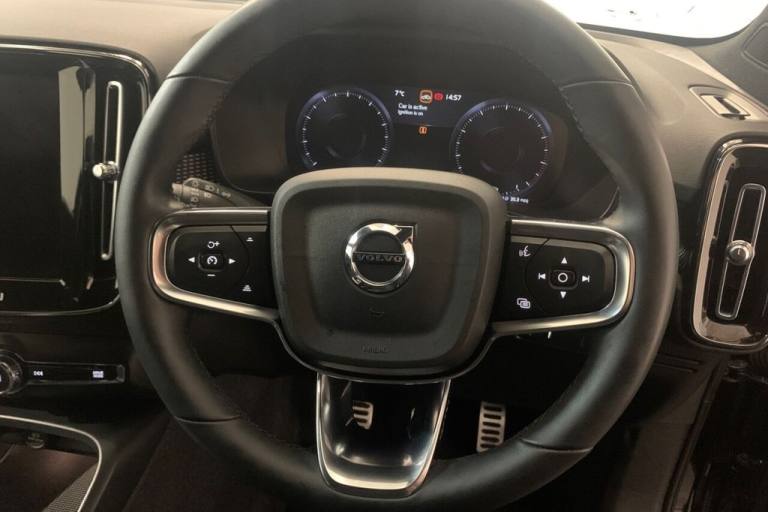 This 2021 Volvo XC40 T3 R Design boasts a clear vehicle history and has had only one owner since new, offering excellent provenance. This Euro 6 compliant 1.5 litre petrol model comes with an MOT valid until November 2026, providing peace of mind for the coming years. Inside, youll find a comfortable cabin featuring 2 Zone Electronic Climate Control with rear air vents, and the convenience of Bluetooth handsfree. The R Design trim enhances the exterior and interior styling, while automatic LED headlights with active high beam ensure excellent visibility. Experience effortless driving with the Volvo XC40 T3 R Design, which accelerates from 0 to 60mph in just 8.8 seconds, demonstrating its responsive performance. Keyless entry, part of the Volvo Cars Services with App, adds a layer of modern convenience, allowing you to unlock and start the car without reaching for your keys. Practicality is also a strong point, with a large boot space perfect for shopping trips or luggage. Furthermore, the Rear Park Assist system with rear sensors makes manoeuvring in tight spaces significantly easier, setting this XC40 apart from others in its class. Lifetime warranty available on this car, plus a £1,000 finance contribution when you part exchange. Voted UK Car Supermarket of the Year two years running, we offer 0% finance, part exchange, and lifetime warranties across our entire range. Every car is thoroughly inspected before sale and comes with a full history check, so you can buy with complete peace of mind. Buy with confidence on our best finance rates. Proud winners of the CarGurus Top-Rated Dealer 2022 and the MotoNovo Extra Mile Award. .12.3in Active TFT Crystal Drivers Information Display, 12V Socket - Front Tunnel Console and Cargo Compartment, 18in Alloy Wheels - 5 Double Spoke Diamond Cut Matt Black, 2-Zone Electronic Climate Control and Rear Air Vents, 9in Centre Console Portrait Touch Screen, A-Pillar Parking Ticket Holder, Adaptive Brake Lights including High Level LED Brake Light, Adjustable Steering Force, Ambient Door and Instrument Panel Lighting, Anti-Theft Alarm including Immobiliser - Volume Sensor and Level Sensor, Autodimming Interior Mirror, Autofolding Heated Power Door Mirrors, Automatic Headlight Levelling System, Automatic LED Headlights with Active High Beam incorporating Day Running Lights, Black Stone Door Mirrors, Black Stone Roof, Bluetooth Handsfree System, Care Key with User Defined Top Speed, Centre Console Cupholders and Storage, City Safety, Cruise Control, Cutting Edge Aluminium Inlays, DAB - Digital Audio Broadcasting Radio, Dark Tinted Windows - Rear Side Windows and Cargo Area, Drive Mode Settings, Driver Knee Airbag, Dual Stage Driver and Passenger Airbags, First Aid Kit, Front Aluminium Tread Plates, Front and Rear Power Windows, Front Door Pocket and Front Cupholder Illumination, Front Footwell Illumination, Front Reading Lights and Theatre Lighting, Front Seat Cushion Extensions, Gear Knob - Leather, Glovebox Bag Hook, Glovebox Compartment Illumination, Height and Reach Adjustable Steering Column, Height and Tilt Adjustable Driver Seat, High Gloss Black Deco Lower Front Bumper, High Gloss Black Front and Rear Skid Plate, High Gloss Black Mesh Front Grille with Surround, High Gloss Black Window Trim Surround, Hill Descent Control, Hill Start Assist, Home Safe and Approach Lighting, IC - Inflatable Curtains - Full Length, Illuminated Vanity Mirrors, ISOFIX Attachment - Outer Rear Seats, Key Integrated Remote Control Central Locking including Fuel Flap with Deadlocking System and Auto Open-Close Power Windows, Keyless Start, Lane Keeping Aid with Driver Alert Control, Leather-Nubuck - Charcoal, Load Protection Net, Locking Wheel Nuts, Luggage Compartment Illumination, Mechanical Child Locks - Rear Doors, Multi-Directional Lumbar Support, Multicolour Theatre Lighting, Oncoming Lane Mitigation, Onyx Black, P-SIM Card - Access to 1 Year - 100GB of Data, Passenger Airbag Cut-Off Switch, Power Operated Tailgate, Power Parking Brake with Auto Hold Function, Private Locking for Tailgate, Rain Sensor - Automatic Windscreen Wiper Activation, Rear Armrest with St
