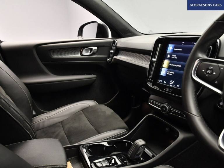 This Volvo XC40 1.5h T4 Recharge R-Design is a plug-in hybrid SUV powered by a 1.5-litre petrol engine combined with a 10.7kWh battery and automatic transmission, offering efficient electric-assisted driving with strong everyday performance. With one owner from new and five services recorded, it has been well maintained, and the R-Design specification adds a sportier look with a high level of standard equipment. It is equipped with front and rear heated seats, an electric tailgate, heated steering wheel and dual-zone climate control. Technology includes satellite navigation, Apple CarPlay, Bluetooth and DAB radio. Manoeuvring is assisted by parking sensors, while driver convenience features include cruise control with speed limiter and push-button start, making this a well-specified and efficient premium plug-in hybrid SUV. Georgesons Cars, one of the leading used car dealerships near me, has been serving Liverpool and the wider Merseyside area since 1955. As a third-generation family-run business, we offer a wide variety of cars for sale, including over 300 quality used cars in Liverpool. Whether youre searching for cars for sale in Liverpool or reliable auto used cars, our inventory is price-checked daily, ensuring competitive pricing. Rated 5-stars on TrustPilot, Georgesons Cars proudly upholds the AA dealer promise and Chartered Trading Standards approval. Contact us today to explore our full range of cars for sale and let our team help you find your next car!.12.3in Active TFT Crystal Drivers Information Display, 12V Socket - Front Tunnel Console and Cargo Compartment, 2-Zone Electronic Climate Control and Rear Air Vents, 9in Centre Console Portrait Touch Screen, A-Pillar Parking Ticket Holder, Adaptive Brake Lights including High Level LED Brake Light, Adjustable Steering Force, Ambient Door and Instrument Panel Lighting, Anti-Theft Alarm including Immobiliser - Volume Sensor and Level Sensor, Autodimming Interior Mirror, Autofolding Heated Power Door Mirrors, Automatic Headlight Levelling System, Automatic LED Headlights with Active High Beam incorporating Day Running Lights, Black Stone Door Mirrors, Black Stone Roof, Bluetooth Handsfree System, Care Key with User Defined Top Speed, Centre Console Cupholders and Storage, City Safety, Cruise Control, Cutting Edge Aluminium Inlays, DAB - Digital Audio Broadcasting Radio, Dark Tinted Windows - Rear Side Windows and Cargo Area, Drive Mode Settings, Driver Knee Airbag, Dual Stage Driver and Passenger Airbags, Electric Front Axle Drive, First Aid Kit, Front Aluminium Tread Plates, Front and Rear Power Windows, Front Door Pocket and Front Cupholder Illumination, Front Footwell Illumination, Front Reading Lights and Theatre Lighting, Front Seat Cushion Extensions, Front Tunnel Net Pocket and Integrated Waste Bin, Gear Knob - Leather, Glovebox Bag Hook, Glovebox Compartment Illumination, Height and Reach Adjustable Steering Column, Height and Tilt Adjustable Driver Seat, High Gloss Black Deco Lower Front Bumper, High Gloss Black Front and Rear Skid Plate, High Gloss Black Mesh Front Grille with Surround, High Gloss Black Window Trim Surround, High Gloss Centre Tunnel Deco, Home Safe and Approach Lighting, IC - Inflatable Curtains - Full Length, Illuminated Vanity Mirrors, ISOFIX Attachment - Outer Rear Seats, Key Integrated Remote Control Central Locking including Fuel Flap with Deadlocking System and Auto Open-Close Power Windows, Keyless Start, Lane Keeping Aid with Driver Alert Control, Load Protection Net, Locking Wheel Nuts, Low Speed Exterior Sound Speaker, Luggage Compartment Illumination, Mechanical Child Locks - Rear Doors, Multi-Directional Lumbar Support, Multicolour Theatre Lighting, Oncoming Lane Mitigation, P-SIM Card - Access to 1 Year - 100GB of Data, Passenger Airbag Cut-Off Switch, Power Operated Tailgate, Power Parking Brake with Auto Hold Function, Private Locking for Tailgate, Rain Sensor - Automatic Windscreen Wiper Activation, Rear Armrest with
