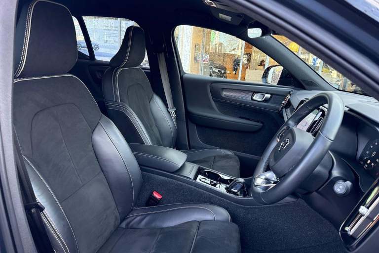 ** 2 years free warranty, 2 years roadside assistance, 2 years MOT cover when finance is taken with Volvo financial services. Terms and conditions apply** FULL VOLVO SERVICE HISTORY, 2 KEYS, FINISHED IN METALLIC DENIM BLUE WITH CHARCOAL LEATHER NUBUCK INTERIOR. PARK ASSIST, 2-ZONE CLIMATE CONTROL, 20 INCH ALLOYS, AUTODIMMING INTERIOR MIRRORS, LED HEADLIGHTS, BLUETOOTH, CRUISE CONTROL, DAB, DRIVE MODE SETTINGS, HEATED FRONT SEATS, ISOFIX, KEYLESS START, LANE KEEPING AID, DRIVER ALERT CONTROL, CHILD LOCKS, ONCOMING LANE MITIGATION, POWER TAILGATE, REAR PARK ASSIST, ROOF RAILS, HIGH PERFORMANCE SOUND, SENSUS NAVIGATION. All Harwoods Volvo Crawley vehicles undergo a comprehensive array of tests and multi point checks, allowing our customers to buy with confidence and peace of mind. These checks include a 150-point checklist alongside mileage and history checks. All work is carried out by Volvo trained technicians to Volvo standards using only genuine Volvo parts where replacement is required. HARWOODS VOLVO CRAWLEY are delighted to offer this VOLVO XC40 2.0 B4 MHEV R-Design Pro SUV 5dr Petrol Hybrid Auto Euro 6 (s/s) (197 ps)**buy with confidence - We are proud to be part of the Harwoods group, a family run business established in 1931. With 17 retailers within our group, we have access to over 1000 vehicles. So, if this isn't the car for you, please contact us and we will find the right one for you** If this isn't the right car for you our wider selection of stock has spec to include Sunroof, Leather, Heated Seats, Towbar, 360-degree camera, Bowers Audio, Panoramic Sun Roof, vehicles with the Ultimate Spec, Tow Bar, other colour options including Black, Blue, Silver, White, Red & Grey, & Euro 6 ULEZ compliant drive trains.