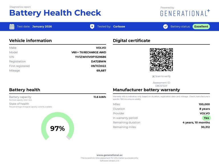 Posting for 9+ years2022 Volvo V60 2.0h T6 Recharge 18.8kWh Plus Dark Estate 5dr Petrol Plug-in Hybrid Auto AW Estate...