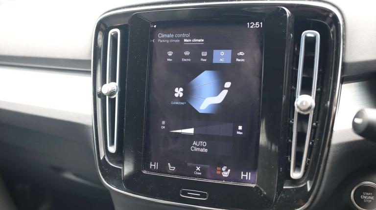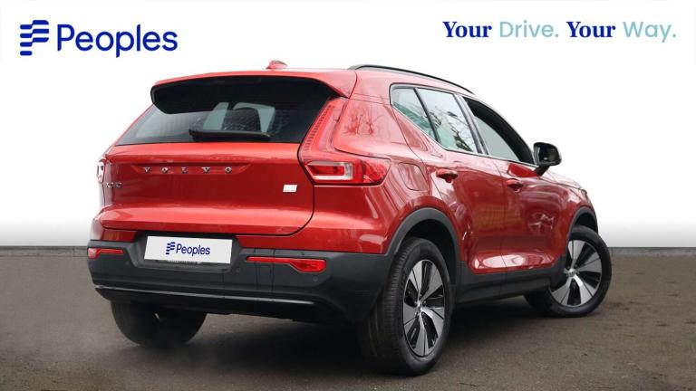 .The Volvo XC40 1.5 T4 Recharge PHEV Plus Dark 5dr Auto is a compact plug-in hybrid SUV that perfectly balances efficiency, performance, and premium Scandinavian design. Its 12.3'' digital driver display and 9'' portrait touchscreen put all vital information and entertainment at your fingertips, with Sensus navigation, DAB radio, and wireless Apple CarPlay/Android Auto keeping you seamlessly connected. The driver assistance suite is extensive, featuring lane keep assist, blind spot information with steer assist, cross traffic alert with autobrake, rear collision warning, oncoming lane mitigation, front and rear park assist with camera, and adaptive high beam headlights, delivering confidence on every journey. Inside, the cabin offers comfort and practicality with heated front seats, multi-directional lumbar support, power-adjustable driver seat with memory, 60/40 split folding rear seats, illuminated glovebox and luggage area, and ambient lighting throughout. Wireless phone charging, multiple USB ports, and high-performance audio enhance the modern driving experience, while roof rails, LED exterior lights, puddle lights, and high-gloss black detailing elevate its bold look. With a dynamic chassis, electric front axle drive, 3.7 kW onboard charger, hill start and descent assist, SIPS side impact protection, city safety system, and comprehensive airbags, the XC40 Recharge Plus Dark delivers a safe, confident, and efficient drive, making it an ideal SUV for both city life and longer trips..12.3'' Active TFT crystal driver's instrument display, 9'' centre console portrait touch screen, Adjustable steering wheel force, Bluetooth hands free telephone kit, Cruise control, Drive mode selector, Driver awareness - blind spot information system with steer assist, cross traffic alert with autobrake, rear collision warning and migitation, E-call, Front park assist, Hands free power tailgate, Lane keep assist with driver alert control, Oncoming Lane Mitigation, Rear park assist, Rear park assist camera, Sensus navigation with European mapping and traffic information, Speed limiter, Speed sensitive steering, Voice activated control for key functions, Wireless Smartphone Integration includes Apple CarPlay and Android auto, Wireless/Inductive Mobile Phone Charging, 3.7 kW monophase on board charger, 7m 10amp charge cable with 3 pin plug and 7m 1 phase 16amp type 2/mode 3 charge cable, Dynamic chassis, Electric front axle drive, Recharging port located in nearside front