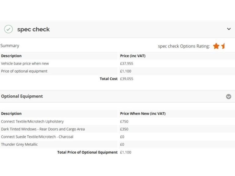 Connect Textile-Microtech - Charcoal,Dark Tinted Windows - Rear Side Windows and Rear Screen,Thunder Grey,Connect Suede Textile/Microtech - Charcoal,Connect Textile/Microtech Upholstery,Dark Tinted Windows - Rear Doors and Cargo Area,Thunder Grey Metallic,1969 cc in-line 4 engine with variable valve timing/camshaft and four valves per cylinder 10.8,12.30 inch 31.2cm multi-function display screen(s) located on instrument panel fixed 9.00 inch 22.9cm touch sensitive multi-function display screen(s) located on dashboard Dashboard centre 1,12.30 inch 31.2cm multi-function display screen(s) located on instrument panel fixed 9.00 inch 22.9cm touch sensitive multi-function display screen(s) located on dashboard instrument cluster 1,12v power outlet located in boot/cargo section and front section boot/cargo,12v power outlet located in boot/cargo section and front section front,22.0 degree maximum slope approach angle and 30.0 degree maximum slope departure angle,250 watt audio player with touch screen ; radio receives AM/FM and digital,36 months remote services includes theft alert tow away alert immobilisation remote lock/unlock find my car beep/flash speed alert vehicle start and send destination to car,48.0 volt 8.3 amp 0.40 kWh (total) lithium ion battery 1 modules from Samsung SDI 0 kWh included and 0 months included,54 litre 11.9 UK gallon main fuel tank main,ABS,Accident data recorder,Alcohol interlock,Alloy trim on dashboard and leather gearknob,Ambient lighting,Anti collision system which activates seat belts activates brake lights and front and rear includes brake assist driver monitor visual/acoustic warning and pedestrian & cyclist avoidance system ; min speed 4 km/h programmable distance operates above 130 kph/78 mph operates above 50 kph/30 mph operates below 50 kph/30 mph and pedestrian collision mitigation steering,Anticorrosion warranty: 144 months Unlimited miles 9999999 km,Anti-theft protection with interior monitoring,Asymmetrically folding rear seats: bench type with space for three people; heated remote folding and folds flat to floor with zero electric adjustments and ski hatch front,Automatic air conditioning with two climate control zones,Automatic door pull shut on boot/hatch,Automatic hazard lights,Black trim around side windows,Bluetooth,Brake assist system,Built-in Apps,Cargo safety net,Central door locking: Operated by card key Includes windows,Centre armrest between front seats,Centre armrest between rear seats,Charges: VAT [20%] = 6325.83 VED (Standard Rate) = 155.00 FRF = 55.00 VED (First Year 151 - 170 g/km) = 575.00 Additional Charges (GB) = 0.00,Computer includes average fuel consumption,Connections for USB (front) x1 USB (rear) x2,Cruise control,Cup holders for front seats and rear seats front seats,Cup holders for front seats and rear seats rear seats,Data completeness: up to date pricing data up to date data for key leasing items specifications data from official price list up to date colour & trim data up to date option pricing data up to date option content data and missing incentives data,Date introduced: Model introduced 22 Sep 2017 and Version introduced 22 Apr 2019,Day time running lights,Door sill protector alloy,Drivers airbag passengers airbag with de-activation switch driver,Drivers airbag passengers airbag with de-activation switch passenger,Driver seat: individual type heated electrically adjustable with six electrical adjustments memory recline adjustment memory reach adjustment memory height adjustment 2-way electric lumbar adjustment memory tilt adjustment and manual thigh adjustment passenger seat: individual type heated electrically adjustable with two electrical adjustments manual recline adjustment manual reach adjustment manual height adjustment 2-way electric lumbar adjustment and manual thigh adjustment driver,Driver seat: individual type heated electrically adjustable with six electrical adjustments memory recline adjustment memory reach adjustment memory height a.Metallic Thunder Grey, Privacy Glass, Contrasting Black Half Leather Interior With Heated Seats & Heated Steering Wheel, Touch Screen Infotainment System, Satellite Navigation, Reversing Camera With Front And Rear Parking Sensors, Bluetooth With Music Streaming, DAB Radio, USB Input, Smart Phone Integrated Apple Carplay/Android Auto, Air Conditioning, Climate Control, Cruise Control, Electric Windows/Mirrors/Folding Mirrors/Drivers Seat/Memory Drivers Seat/Tailgate, Multi-Function Steering Wheel, Power Steering, ABS Brakes, Multi Airbags, 5 Headrests, Three Point Rear Seatbelts, ISOFIX Child Seat Preparation, Push Button To Start, Arm Rest, Lumbar Support, Roof Side Rails, Shark Finn Antenna, Automatic LED Headlights, 18in Alloy Wheels, Remote Alarm, This Car Has Covered Only 17000 Miles & Benefits From A Full Service History, 3 Services, It Costs Over £37000 New And Has More Than £1000 Worth Of Extras, This Car Costs Just £195 A Year Road Tax, NO ULEZ CHARGE.Every Vehicle is