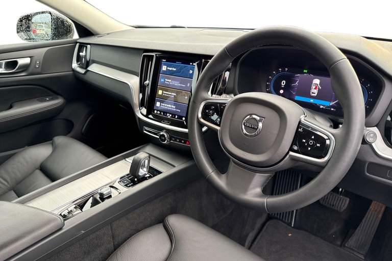 Available now from Motor Match Chester, serviced by Volvo at 18741 miles! This brilliant Volvo V60 MHEV Plus comes finished in the gleaming Bright Dusk metallic paint, which looks fantastic paired with the 19in diamond-cut alloy wheels and contrasting black door mirrors. At the front of the vehicle youll find the automatic LED headlights and rain-sensing wipers, offering superb visibility. The Volvo also benefits from electrically adjustable, heated and power-folding door mirrors. The interior offers comfy full-leather upholstery, with sports seats offering excellent support. The drivers seat is electrically adjustable, and Isofix mounting points can be found on the outer rear seats. The V60 estate is super practical with plenty of legroom for passengers, and a roomy boot which is easily accessed with the powered tailgate. The front and outer rear seats are heated, as is the steering wheel, and dual-zone climate control is also provided to keep all passengers comfortable. This Volvo also boasts an amazing media system, providing access to DAB radio, Bluetooth interface and USB connectivity, so youve got plenty of choice when it comes to music, with the superb Bose sound system providing an amazing level of sound around the vehicle. You also have the reliable satellite navigation system on board, along with the ability to connect smartphones to use Apple CarPlay/Android Auto. This car is equipped with cruise control, blind spot monitoring and lane keep assist, which com...