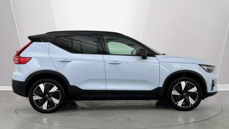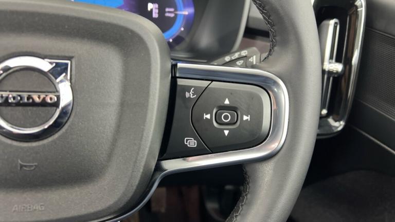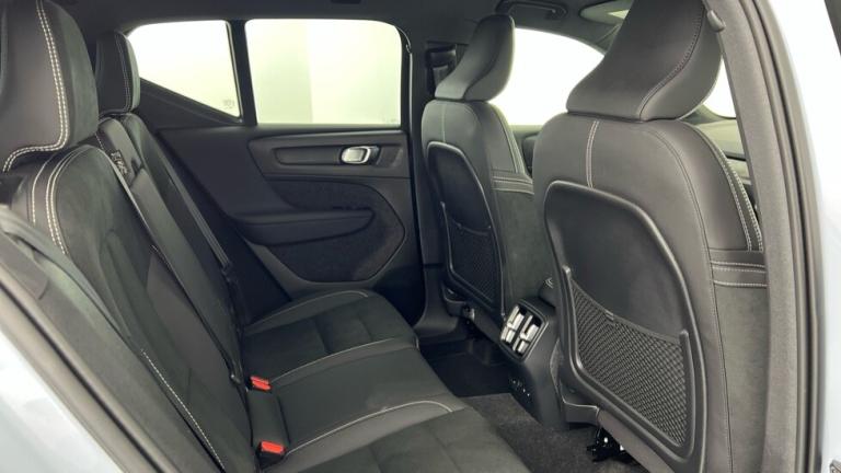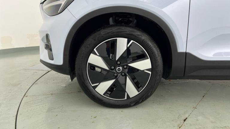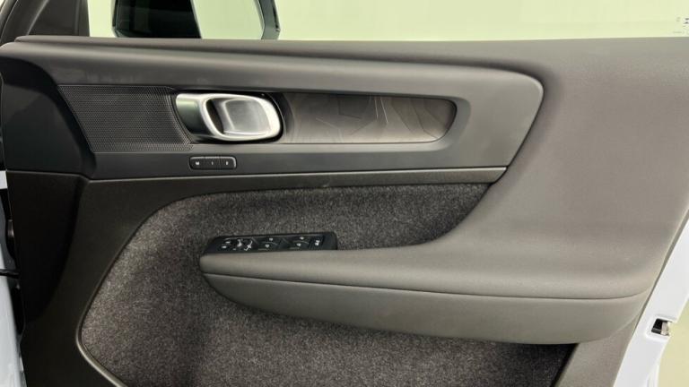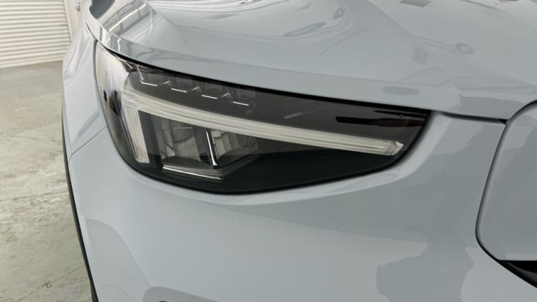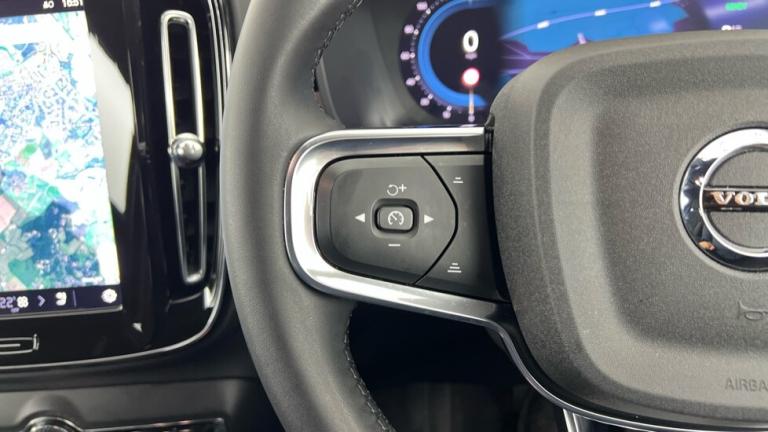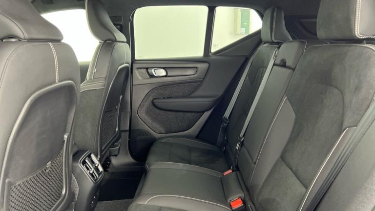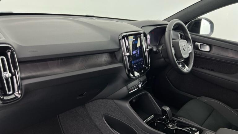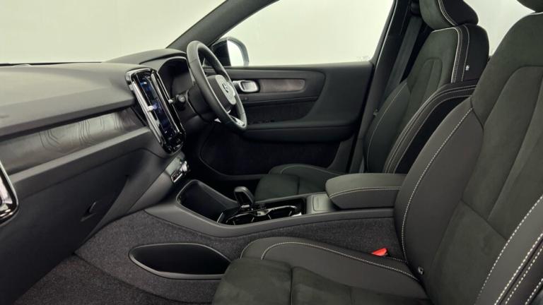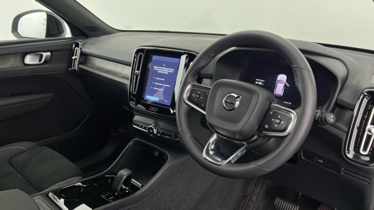 ..Roof top. high-gloss black, 12.3-inch driver display, 19 5-spoke glossy black diamond cut, 19 5-spoke glossy black diamond cut. rear, 5 seats, 9-inch centre display, Adaptive cruise control, Adaptive power steering, Adjustable passenger seat, Afterrun parking climate, Air purifier and remote cabin pre-cleaning, Alarm, Alcohol lock software (not available in the UK), Apple CarPlay, Auto-dimmed rear view mirrors, Automatic door locking, BLIS and Cross Traffic Alert, Bluetooth connection, Body coloured covered grille, Body-coloured door handles with ground lighting, Charcoal headlining, Charcoal interior inserts, Charging station cable. 6m, Comfort front seats, Connect Suede textile/Microtech upholstery, Digital Audio Broadcasting (DAB+), Digital owners manual, Door mirror covers. high-gloss black, Double locking, Dual-stage airbags, EX40 aluminium front tread plates, Electric cabin heater and cooler, Emergency brake light, First-aid kit, Fixed rear head restraints, Fog lamps, Foldable load floor with cargo divider and grocery bag, Folding bag hook, Front centre armrest, Front load compartment, Glossy black tunnel console, Google Assistant. Google Maps and Google Play Store, Heat pump, Heated front seats, Heated grill emblem, Heated rear seats, Heated steering wheel, High Performance audio system, High-gloss black side window trim, Hill Descent Control, Hill Start Assist, Humidity sensor, ISOFIX mounting points. rear seat, Illuminated vanity mirrors, Inflatable Curtain, Intelligent Speed Assist (ISA), Interior illumination. high level, Keyless entry with hands-free power tailgate, Knee airbag. driver side, LED headlights, Lane Keeping Aid and Lane Departure Warning, Lockable wheel bolts, Manual cushion extensions. driver and passenger, Mechanical release second seat row, Oncoming Lane Mitigation, Park assist camera. rear, Park assist. rear and front, Passenger airbag cut-off switch, Pilot Assist, Power 4-way lumbar support, Power child safety lock, Power driver seat with memory, Power retractable door mirrors, Power tailgate, Protection net, Protective cap kit. Matt Tech Grey, Rain sensor, Rear Collision Warning, Rear centre armrest, Remote key, Road Sign Information, Roof rails. glossy black, Roof top. high-gloss black, Safety belts, Sculpted gear shift, Shift-by-wire single speed transmission, Side impact protection, Slippery road alert, Small storage. front, Sport textile interior cabin floor mats. Charcoal, Steering wheel remote control, Tailored sport