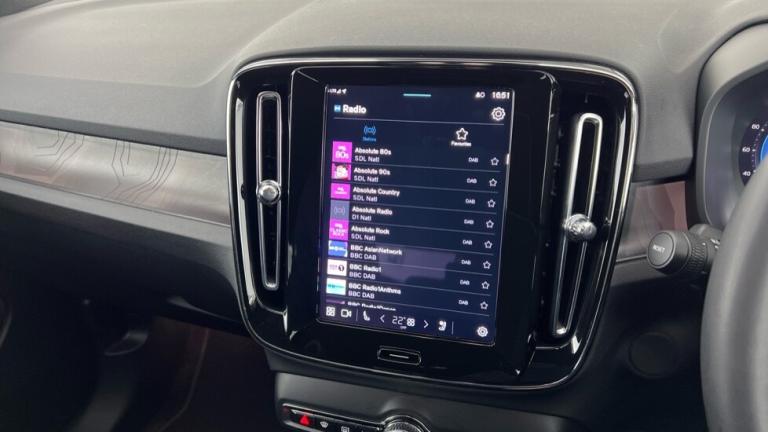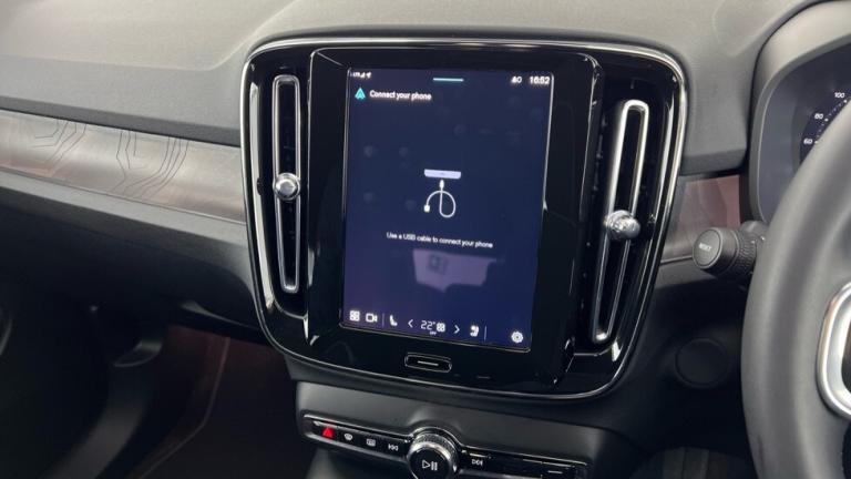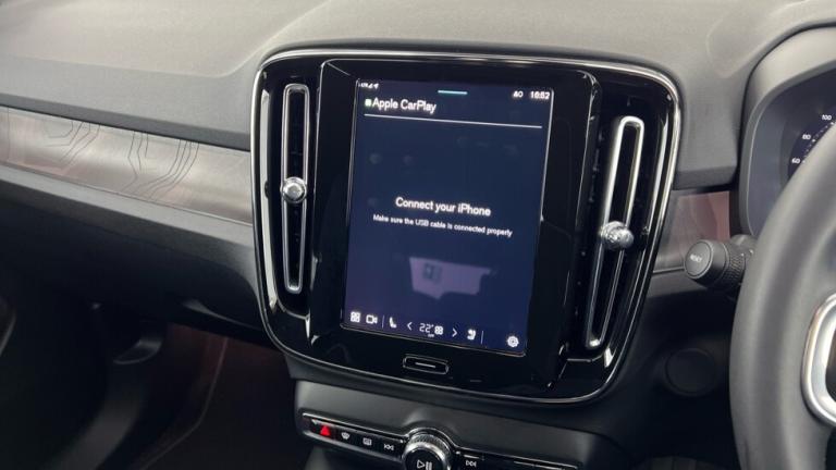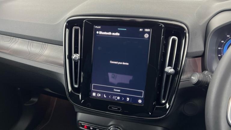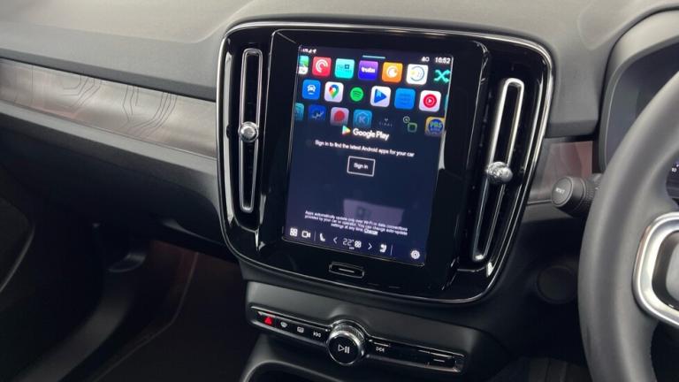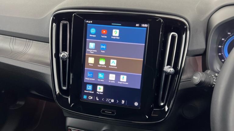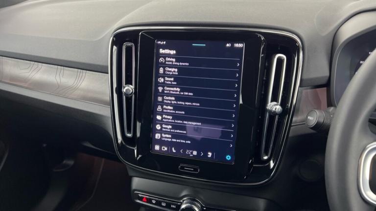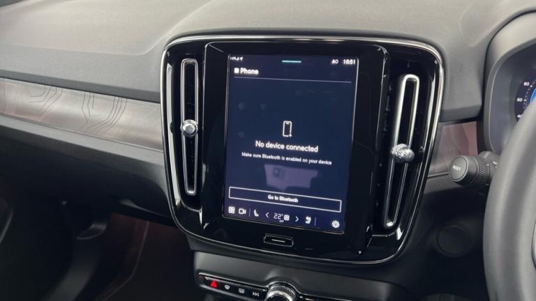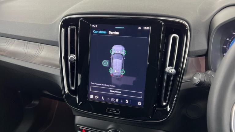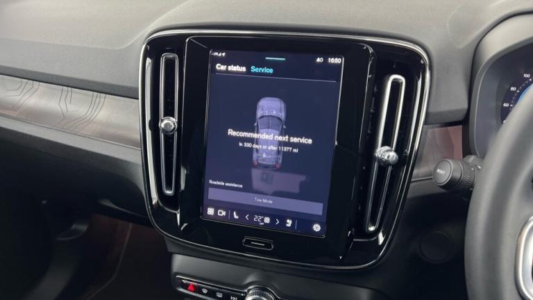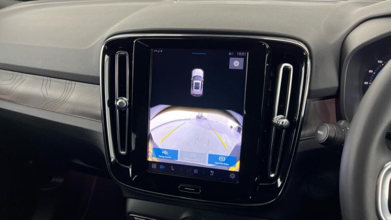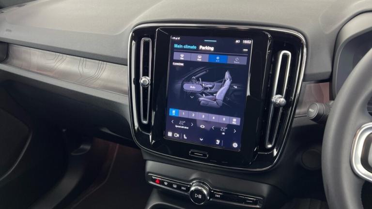 ..Roof top. high-gloss black, 12.3-inch driver display, 19 5-spoke glossy black diamond cut, 19 5-spoke glossy black diamond cut. rear, 5 seats, 9-inch centre display, Adaptive cruise control, Adaptive power steering, Adjustable passenger seat, Afterrun parking climate, Air purifier and remote cabin pre-cleaning, Alarm, Alcohol lock software (not available in the UK), Apple CarPlay, Auto-dimmed rear view mirrors, Automatic door locking, BLIS and Cross Traffic Alert, Bluetooth connection, Body coloured covered grille, Body-coloured door handles with ground lighting, Charcoal headlining, Charcoal interior inserts, Charging station cable. 6m, Comfort front seats, Connect Suede textile/Microtech upholstery, Digital Audio Broadcasting (DAB+), Digital owners manual, Door mirror covers. high-gloss black, Double locking, Dual-stage airbags, EX40 aluminium front tread plates, Electric cabin heater and cooler, Emergency brake light, First-aid kit, Fixed rear head restraints, Fog lamps, Foldable load floor with cargo divider and grocery bag, Folding bag hook, Front centre armrest, Front load compartment, Glossy black tunnel console, Google Assistant. Google Maps and Google Play Store, Heat pump, Heated front seats, Heated grill emblem, Heated rear seats, Heated steering wheel, High Performance audio system, High-gloss black side window trim, Hill Descent Control, Hill Start Assist, Humidity sensor, ISOFIX mounting points. rear seat, Illuminated vanity mirrors, Inflatable Curtain, Intelligent Speed Assist (ISA), Interior illumination. high level, Keyless entry with hands-free power tailgate, Knee airbag. driver side, LED headlights, Lane Keeping Aid and Lane Departure Warning, Lockable wheel bolts, Manual cushion extensions. driver and passenger, Mechanical release second seat row, Oncoming Lane Mitigation, Park assist camera. rear, Park assist. rear and front, Passenger airbag cut-off switch, Pilot Assist, Power 4-way lumbar support, Power child safety lock, Power driver seat with memory, Power retractable door mirrors, Power tailgate, Protection net, Protective cap kit. Matt Tech Grey, Rain sensor, Rear Collision Warning, Rear centre armrest, Remote key, Road Sign Information, Roof rails. glossy black, Roof top. high-gloss black, Safety belts, Sculpted gear shift, Shift-by-wire single speed transmission, Side impact protection, Slippery road alert, Small storage. front, Sport textile interior cabin floor mats. Charcoal, Steering wheel remote control, Tailored sport