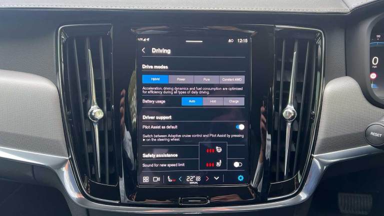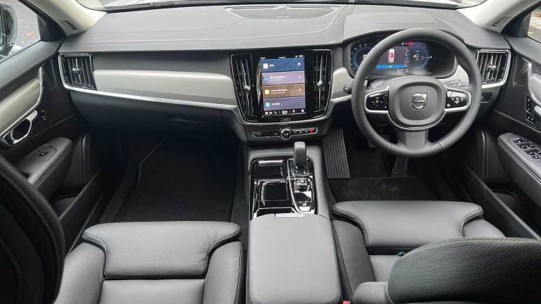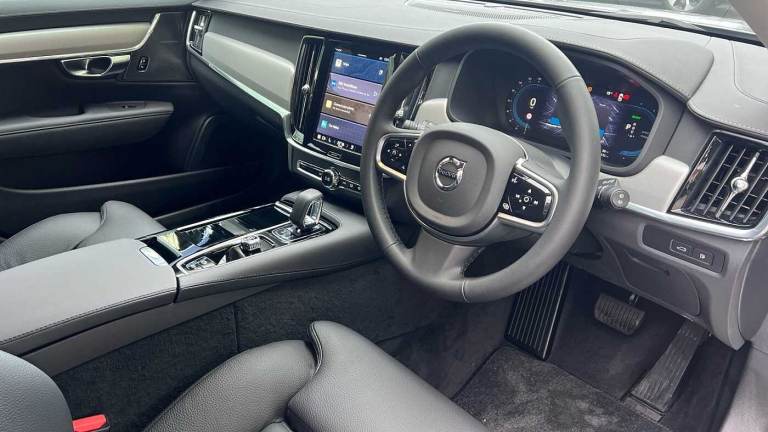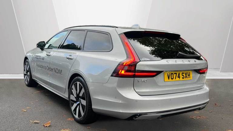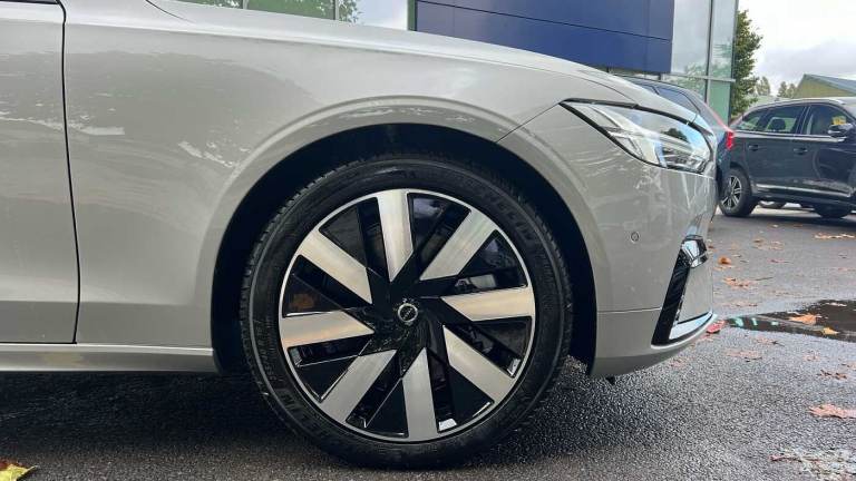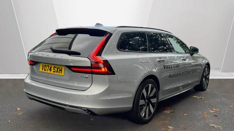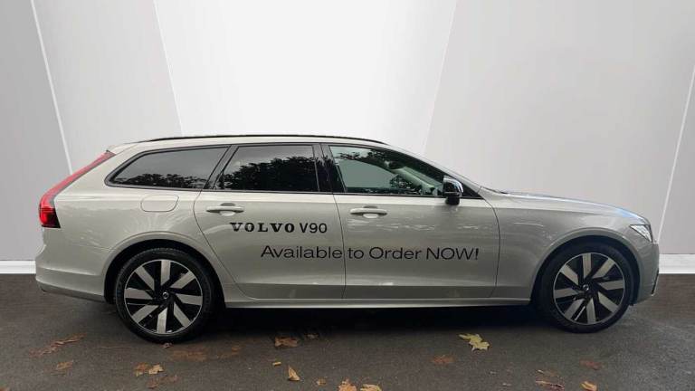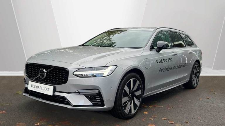 Available from 13/12/2024. Volvo V90 Estate 2.0 T6 (350) PHEV Plus Dark 5dr AWD Auto in Silver Dawn. Specification Includes Tinted rear windows,Checkered aluminium decor,Tailored steering wheel. Charcoal,8-speed Geartronic™ automatic,Pedals,Tailored gear shift,Two-zone climate system,Afterrun parking climate,Passenger airbag cut-off switch,Dual-stage airbags,Knee airbag. driver side,Blond headlining,Road Sign Information,Lane Keeping Aid and Lane Departure Warning,Front grille with high-gloss black insert,Heated grill emblem,LED headlights,Trailer lamp control,12-inch driver display,Google Assistant. Google Maps and Google Play Store - included for 4 years,Adaptive cruise control,Pilot Assist,Intelligent Speed Assist (ISA),Volvo Cars App remote functions - included for 4 years,Air-ventilated subwoofer,Digital Audio Broadcasting (DAB+),Harman Kardon Premium Sound,Power retractable door mirrors,Automatic door locking,Remote key,Door mirror covers. high-gloss black,Double locking,Tinted rear windows,BLIS™ and Cross Traffic Alert,Alarm,Power child safety lock,Power tailgate,Keyless entry with hands-free power tailgate,Air purifier,Digital owners manual,Tailored dashboard and door top panels,Leather upholstery,Power driver seat with memory,Fully adjustable passenger seat,Heated front seats,Heated rear seats,Power folding rear head restraints,5 seats,Mechanical release second seat row,Power 4-way lumbar support,Exclusive textile interior cabin floor mats. Charcoal,Protection net,Grocery bag holder,Rear centre armrest,Illuminated vanity mirrors,Interior illumination. high level,Power outlet. load compartment,First-aid kit,Rear door sun curtains,Auto-dimmed rear view mirrors,Hidden storage,Power cushion extension. driver,Chassis,Hill Start Assist,Tyre pressure monitoring,Oncoming Lane Mitigation,Rear Collision Warning,Slippery road alert,Emergency brake light,Heated steering wheel,Adaptive power steering,19? 8-Spoke Black Diamond Cut,Temporary mobility kit,Lockable wheel bolts,Heated windscreen,Wiper blades with integrated washers,Body-coloured door handles with ground lighting,Glossy black front decor elements,Tailgate scuff plate. stainless steel,Illuminated sill moulding,High-gloss black side window trim,Roof rails. glossy black,Warning triangle,Tempered side windows,Park assist. front. rear and sides,Ticket holder,Electric cabin heater and cooler,360° camera,Alcohol lock software (not available in the UK),Charging station cable. 6m,Apple