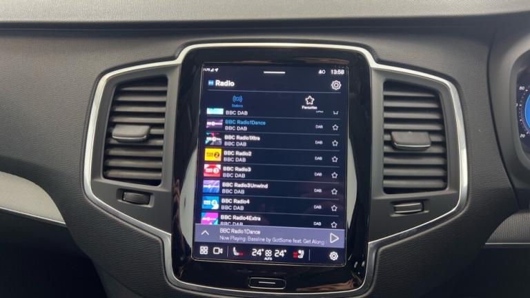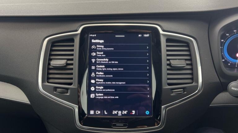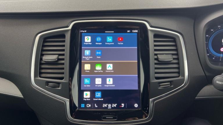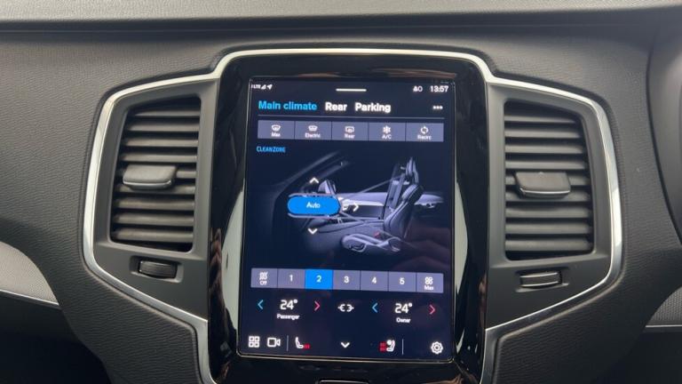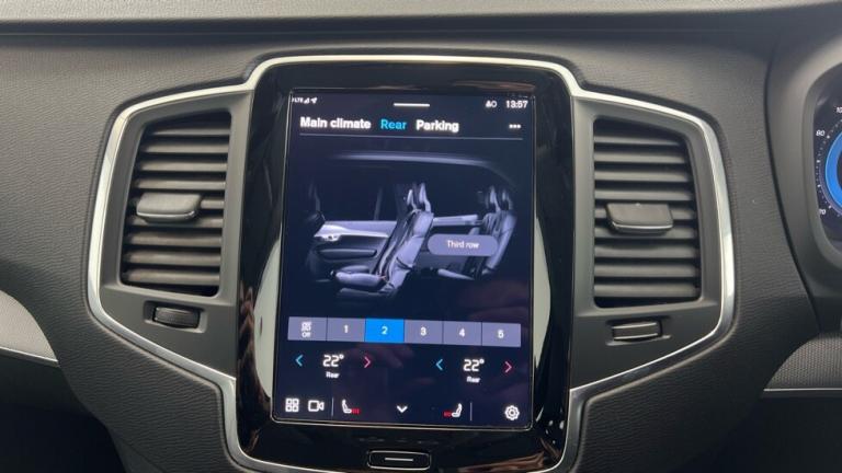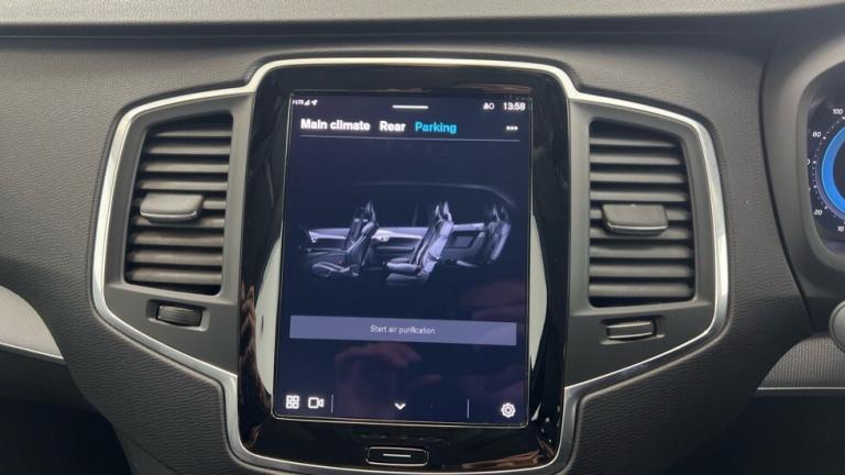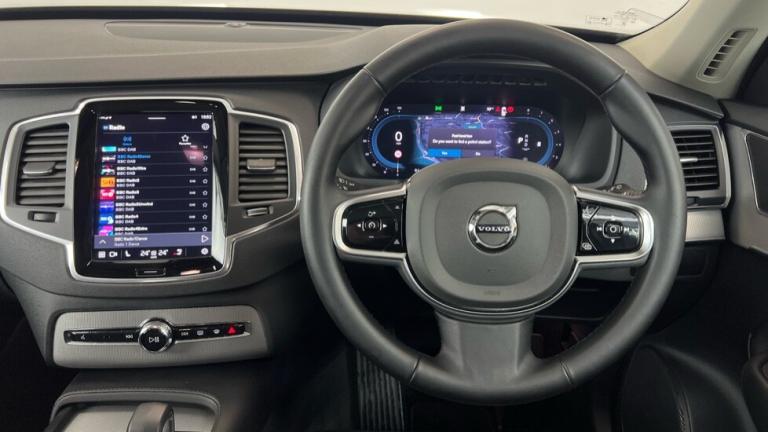 ..12.3'' Progressive Driver Display, 9'' centre console portrait touch screen, Adjustable steering wheel force, Apple carplay (wired), Bluetooth handsfree system, Driver alert control with lane keeping aid, Driver assistance (pilot assist and adaptive cruise control), Driver awareness - Blind spot information system with steer assist, cross traffic alert with autobrake and rear collision warning and mitigation, Emergency call service, Front and rear park assist, Google Automotive Services - Navigation with Voice recoginition and google assistant, Handsfree power tailgate opening and closing, Intelligent speed assistance, Oncoming Lane Mitigation, Power operated tailgate, Rear park assist camera, Service interval indicator, Speed sensitive steering, Trip computer, Volvo on call, Wireless/Inductive Mobile Phone Charging, 8 speed automatic transmission with start/stop + manual change functions, Touring chassis, DAB Radio (Digital Audio Broadcasting), High performance sound, 2x USB Type C in front and 2x USB Type C in rear, 10 speakers/220W output, Steering wheel remote infotainment controls, Adaptive brake lights with high level LED brake lights, Auto dimming interior + exterior mirrors, Automatic headlight levelling system, Automatic LED Headlights + Active high beam incorporating daytime running lights, Body colour bumpers, Chrome window surround, Colour coordinated auto folding and heated power door mirrors, Front and rear power windows, Heated front windscreen, Home safe and approach lighting, Integrated roof rails in Chrome, Piano black front grille with chrome surround, Puddle lights, Rain sensor with automatic windscreen wiper activation, Rear side wing doors, Rear wash/wipe with intermittent wipe setting, Roof antenna, Roof spoiler, Visible VIN plate, 12V socket front tunnel console, rear passenger compartment, 2nd Row centre armrest with and cupholders, 3 Spoke tailored steering wheel with chrome trim, 4 zone electronic climate control with Clean zone air quality system + pollen filter, A-pillar parking ticket holder, Air conditioning for 3rd row of seats, Air purifier PM2.5, B Pillar ventilation, Bright metal luggage scuff plate, Centre console cupholders and storage, Floor mats, Front and rear aluminium tread plates, Front and rear courtesy lights, Front footwell and side step illumination, Front headrests, Front reading lights, Front seat cushion extensions, Front tunnel storage illumination, Heated front seats, Heated rear seats, Heated steering