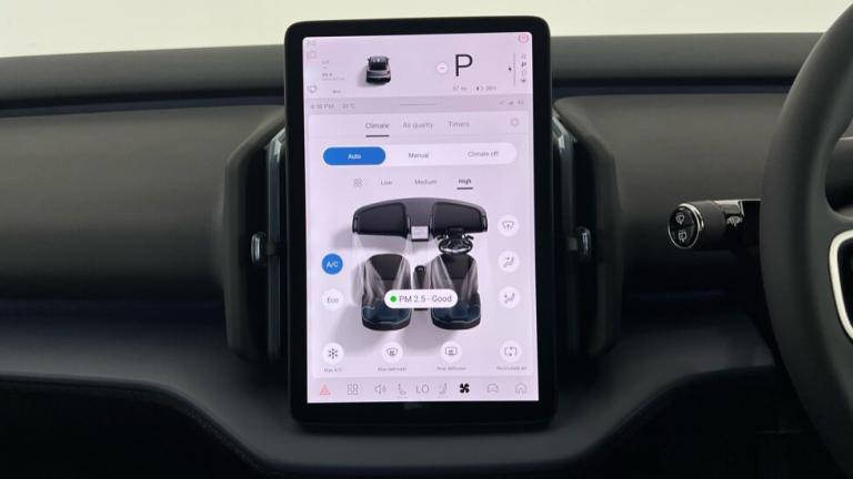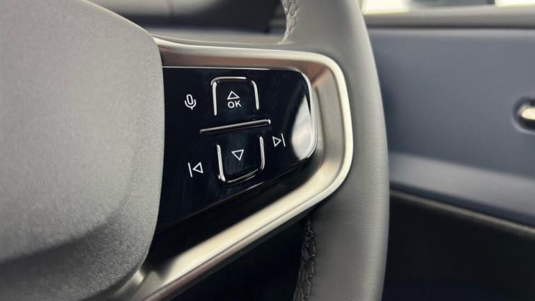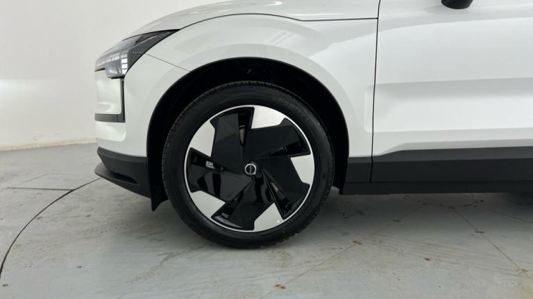 ..Heated front seats and steering wheel, 11kw On-Board Charger (OBC), 12.3-inch centre display, 19 5-spoke glossy black diamond cut, Adaptive cruise control, Adaptive cruise control, Advanced sensing technology, Air quality measurement and remote cabin air pre-cleaning, Air quality system, Air vent decor. blue, Alcohol lock software (not available in the UK), Ambience themes, Auto-dimmed inner and door mirrors, Blind Spot Information System (BLIS), Charging station cable. 5m (22kW), Child safety lock, Collision avoidance and mitigation, Comfort chassis, Denim decor, Digital Audio Broadcasting (DAB+), Digital key plus, Direct occupant sensing, Door mirror covers. high-gloss black, Door mirrors with ground lighting, Door opening alert, Double lock, Driver airbag, Dual-stage airbags. passenger, First-aid kit, Fixed lumbar support, Flexible load floor, Fog lamps. rear, Front Cross Traffic Alert, Front and rear USB-C ports, Front load compartment, Front storage, Google Assistant. Google Maps and Google Play Store - included for 4 years, Harman Kardon Premium Sound, Harman Kardon Premium Sound, Heat pump, Heat pump, Heated front seats, Heated front seats, Humidity sensor, ISOFIX child seat attachment, Inflatable Curtain, Intelligent Speed Assist (ISA), Interior illumination. high level, Intersection autobrake, Key tag, LED headlights, LED headlights with active high beam, LED illumination. load compartment, Lane Departure Warning, Lane change assist, Large door pockets, Manually adjustable driver seat, Manually adjustable passenger seat, NFC smart card key, Oncoming Lane Mitigation, One pedal drive, Over-the-air updates (OTA), Park assist camera. rear, Passenger airbag cut-off switch, Pedestrian and cyclist steering avoidance, Pilot Assist, Post impact braking, Power outlet. load compartment, Power tailgate, Rain sensor, Rear Collision Warning, Rear Cross Traffic Alert with Autobrake, Rear LED lights, Rear phone storage, Rear-wheel drive (RWD), Removable rear storage box, Roof spoiler. high-gloss black, Roof top in contrast colour. high-gloss black, Run-off Road Mitigation, Seat track position sensors. driver and passenger, Shift-by-wire single speed transmission, Side impact protection, Sliding cupholders and storage, Speed limiter, Summer tyres, Tailored sports steering wheel, Temporary mobility kit, Textile & Nordico upholstery, Textile interior cabin floor mats, Traffic Jam Assist, Two-zone climate system, Volvo EX30 App, Whiplash injury protection,