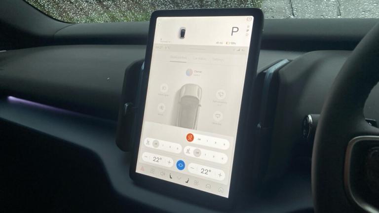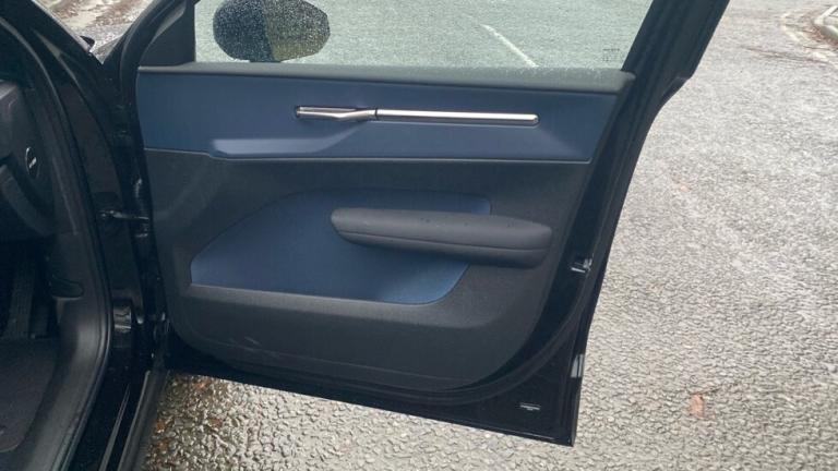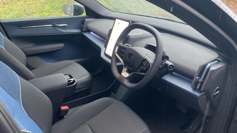 ..Two-zone climate system, 11kw On-Board Charger (OBC), 12.3-inch centre display, 19 5-spoke glossy black diamond cut, 5 seats, 5G capability, Adaptive cruise control, Advanced sensing technology, Air quality measurement and remote cabin air pre-cleaning, Air quality system, Air vent decor. blue, Alarm, Alcohol lock software (not available in the UK), All-wheel Drive (AWD), Ambience themes, Auto-dimmed inner and door mirrors, Blind Spot Information System (BLIS), Charging station cable. 5m (22kW), Child safety lock, Collision avoidance and mitigation, Comfort chassis, Denim decor, Digital Audio Broadcasting (DAB+), Digital key plus, Direct occupant sensing, Door mirror covers. high-gloss black, Door mirrors with ground lighting, Door opening alert, Double lock, Driver airbag, Driver alert system, Dual-stage airbags. passenger, First-aid kit, Fixed lumbar support, Flexible load floor, Fog lamps. rear, Front Cross Traffic Alert, Front and rear USB-C ports, Front load compartment, Front storage, Google Assistant. Google Maps and Google Play Store - included for 4 years, Harman Kardon Premium Sound, Heat pump, Heated front seats, Heated steering wheel, Hill Descent Control, Hill Start Assist, Humidity sensor, ISOFIX child seat attachment, Inflatable Curtain, Intelligent Speed Assist (ISA), Interior illumination. high level, Intersection autobrake, Key tag, LED headlights, LED headlights with active high beam, LED illumination. load compartment, Lane Departure Warning, Lane Keeping Aid, Lane change assist, Large door pockets, Manually adjustable driver seat, Manually adjustable passenger seat, NFC smart card key, Oncoming Lane Mitigation, Oncoming Mitigation by Braking, One pedal drive, Over-the-air updates (OTA), Park assist camera. rear, Park assist. front and rear, Passenger airbag cut-off switch, Pedestrian and cyclist steering avoidance, Pilot Assist, Post impact braking, Power outlet. load compartment, Power tailgate, Rain sensor, Rear Collision Warning, Rear Cross Traffic Alert with Autobrake, Rear LED lights, Rear phone storage, Removable rear storage box, Road Sign Information, Roof spoiler. high-gloss black, Run-off Road Mitigation, Seat track position sensors. driver and passenger, Shift-by-wire single speed transmission, Side impact protection, Sliding cupholders and storage, Speed limiter, Summer tyres, Tailored sports steering wheel, Temporary mobility kit, Textile & Nordico upholstery, Textile interior cabin floor mats, Traffic Jam Assist,